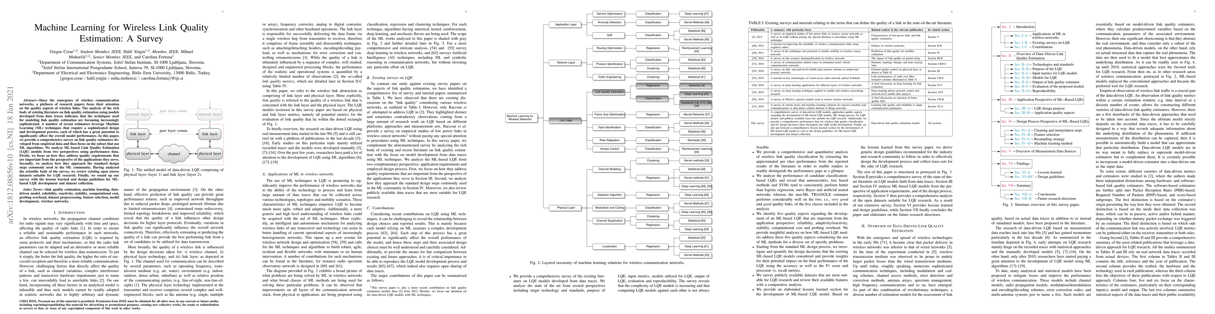 This paper surveys machine learning techniques for wireless link quality estimation, analyzing how these models meet application-specific quality requirements and align with standard machine learning design steps. It also reviews relevant datasets and provides guidelines for future research.