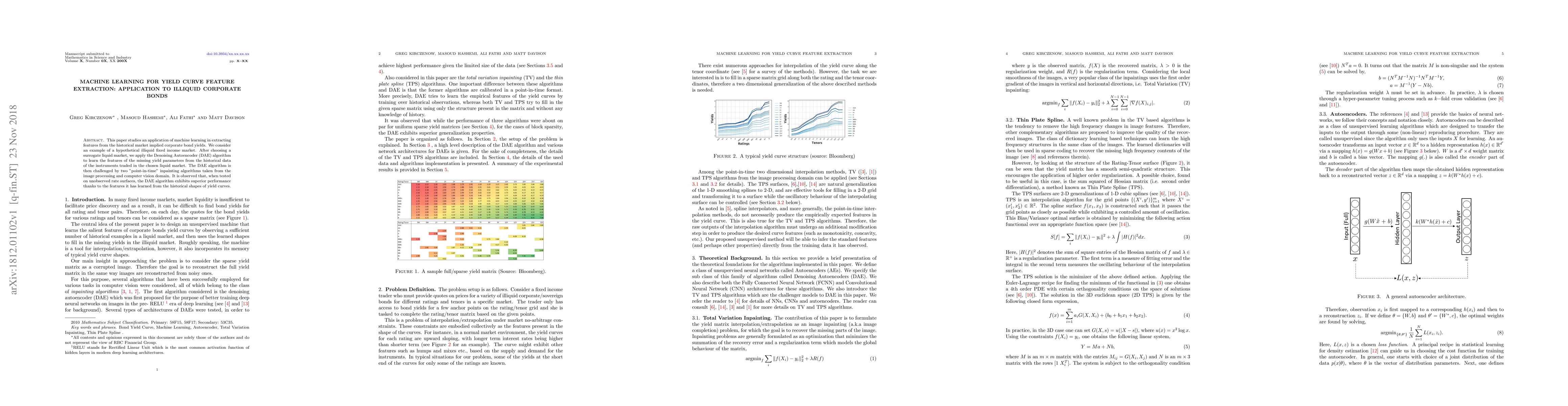 This paper studies an application of machine learning in extracting features from the historical market implied corporate bond yields. We consider an example of a hypothetical illiquid fixed income market. After choosing a surrogate liquid market, we apply the Denoising Autoencoder (DAE) algorithm to learn the features of the missing yield parameters from the historical data of the instruments traded in the chosen liquid market. The DAE algorithm is then challenged by two "point-in-time" inpainting algorithms taken from the image processing and computer vision domain. It is observed that, when tested on unobserved rate surfaces, the DAE algorithm exhibits superior performance thanks to the features it has learned from the historical shapes of yield curves.