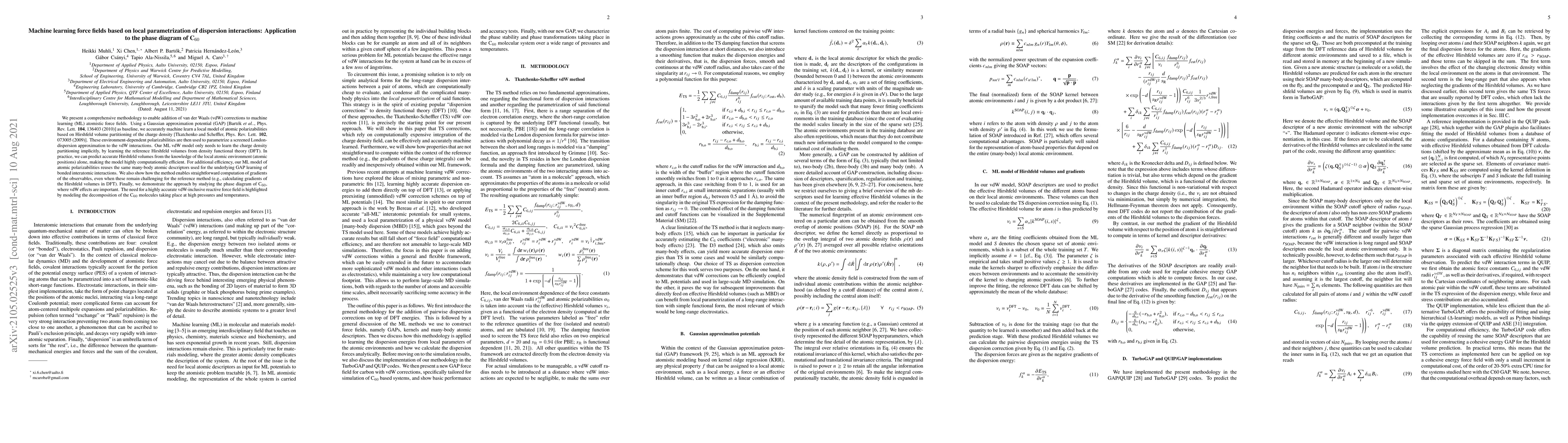 We present a comprehensive methodology to enable addition of van der Waals (vdW) corrections to machine learning (ML) atomistic force fields. Using a Gaussian approximation potential (GAP) [Bart\'ok et al., Phys. Rev. Lett. 104, 136403 (2010)] as baseline, we accurately machine learn a local model of atomic polarizabilities based on Hirshfeld volume partitioning of the charge density [Tkatchenko and Scheffler, Phys. Rev. Lett. 102, 073005 (2009)]. These environment-dependent polarizabilities are then used to parametrize a screened London-dispersion approximation to the vdW interactions. Our ML vdW model only needs to learn the charge density partitioning implicitly, by learning the reference Hirshfeld volumes from density functional theory (DFT). In practice, we can predict accurate Hirshfeld volumes from the knowledge of the local atomic environment (atomic positions) alone, making the model highly computationally efficient. For additional efficiency, our ML model of atomic polarizabilities reuses the same many-body atomic descriptors used for the underlying GAP learning of bonded interatomic interactions. We also show how the method enables straightforward computation of gradients of the observables, even when these remain challenging for the reference method (e.g., calculating gradients of the Hirshfeld volumes in DFT). Finally, we demonstrate the approach by studying the phase diagram of C$_{60}$, where vdW effects are important. The need for a highly accurate vdW-inclusive reactive force field is highlighted by modeling the decomposition of the C$_{60}$ molecules taking place at high pressures and temperatures.