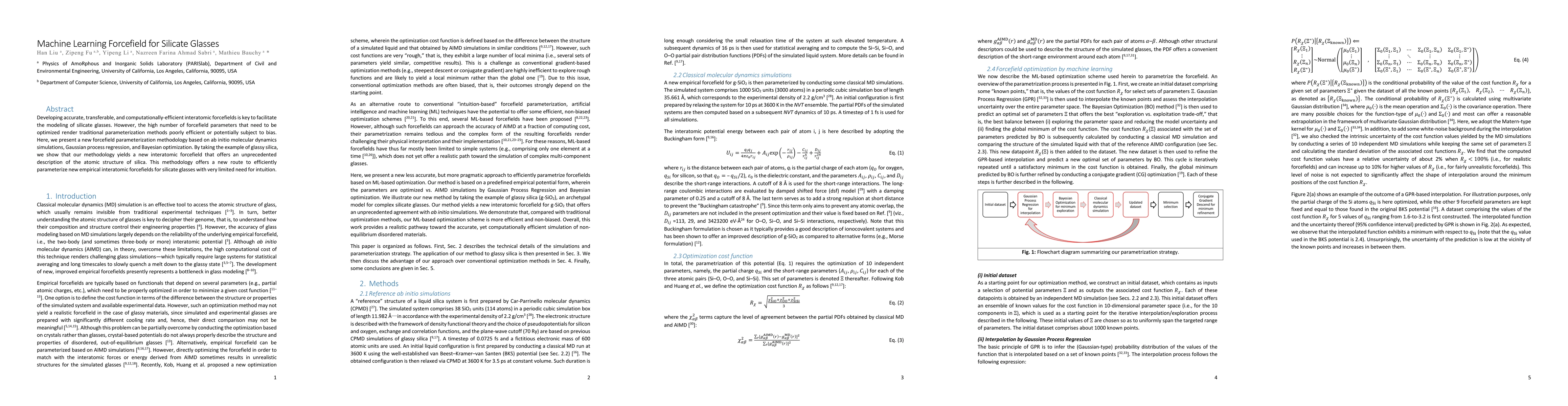 This research introduces a novel machine learning-based methodology for parameterizing interatomic forcefields for silicate glasses, using ab initio simulations, Gaussian process regression, and Bayesian optimization. The new forcefield for glassy silica provides an exceptionally accurate representation of its atomic structure, demonstrating a more efficient and unbiased parameterization process.