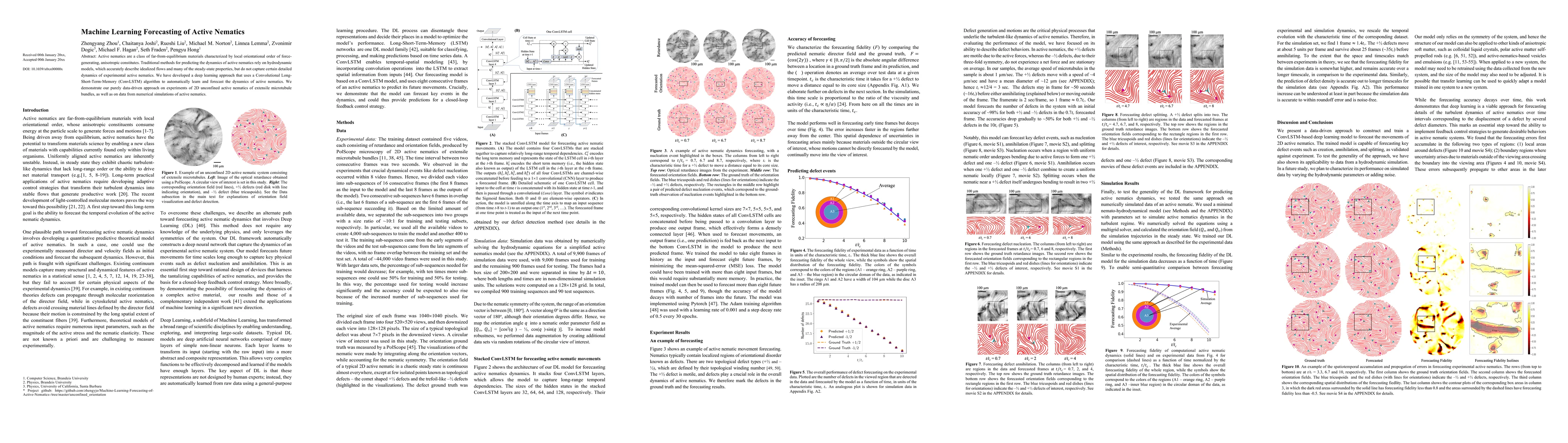 This paper introduces a deep learning method using ConvLSTM to forecast the dynamics of active nematics, surpassing traditional hydrodynamic models by capturing detailed experimental dynamics. The approach is validated through experiments on 2D microtubule bundles and numerical simulations.