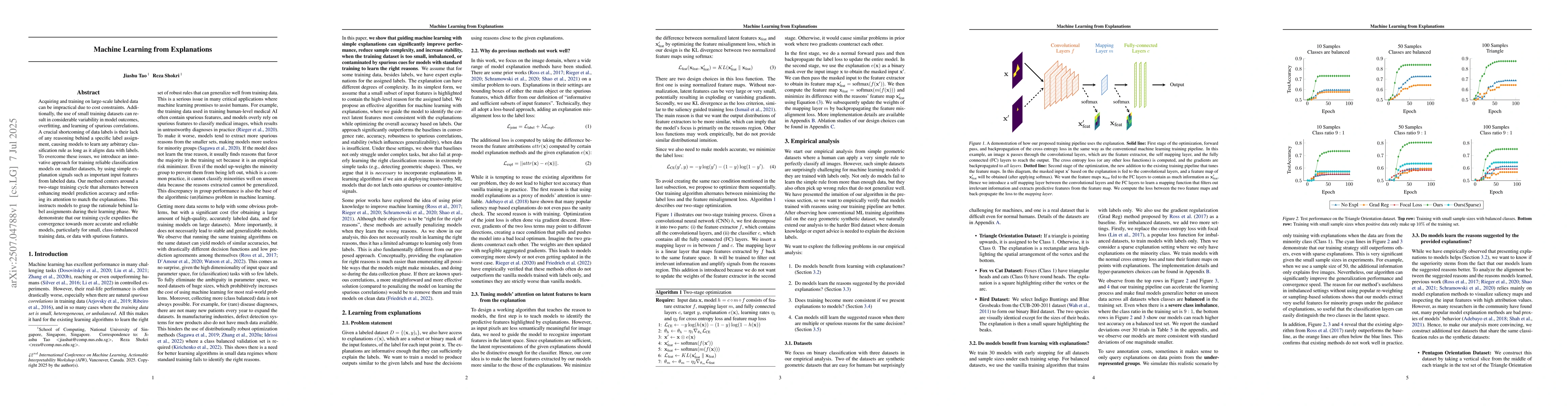 Acquiring and training on large-scale labeled data can be impractical due to cost constraints. Additionally, the use of small training datasets can result in considerable variability in model outcomes, overfitting, and learning of spurious correlations. A crucial shortcoming of data labels is their lack of any reasoning behind a specific label assignment, causing models to learn any arbitrary classification rule as long as it aligns data with labels. To overcome these issues, we introduce an innovative approach for training reliable classification models on smaller datasets, by using simple explanation signals such as important input features from labeled data. Our method centers around a two-stage training cycle that alternates between enhancing model prediction accuracy and refining its attention to match the explanations. This instructs models to grasp the rationale behind label assignments during their learning phase. We demonstrate that our training cycle expedites the convergence towards more accurate and reliable models, particularly for small, class-imbalanced training data, or data with spurious features.