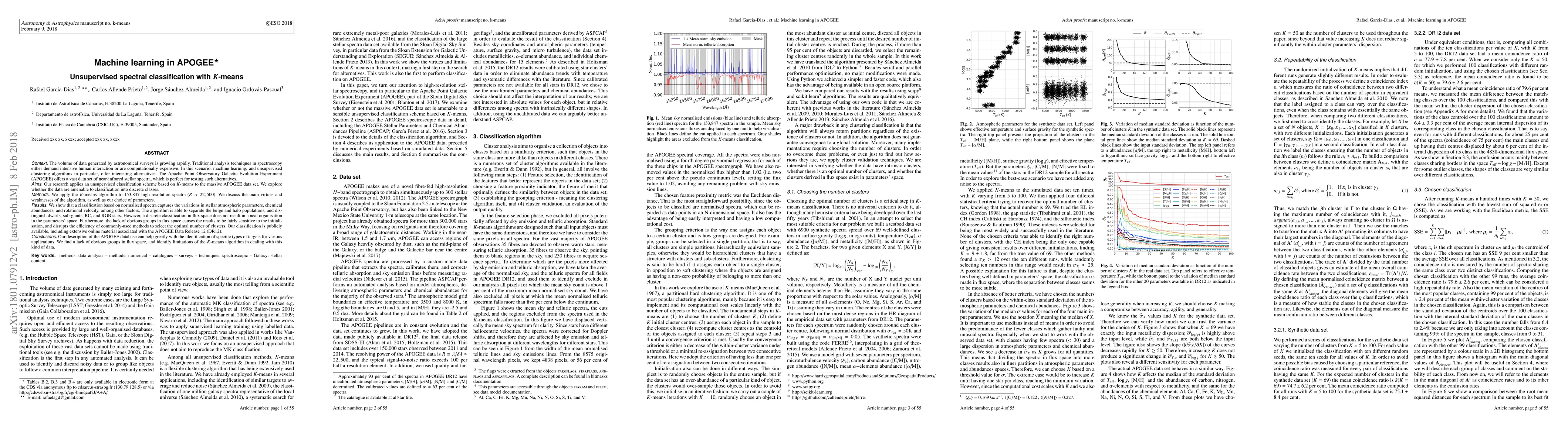 This paper applies the $K$-means algorithm to classify the vast APOGEE dataset of near-infrared stellar spectra, demonstrating its ability to distinguish various stellar populations. However, it highlights the algorithm's sensitivity to initialization and challenges in flux space, suggesting room for improvement in unsupervised spectral classification.