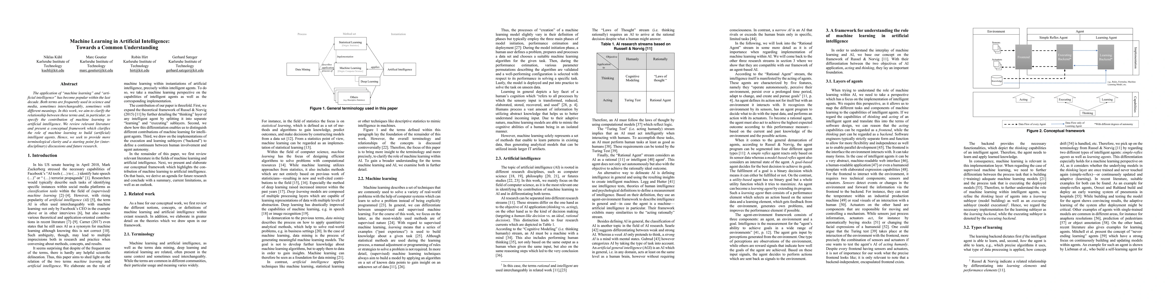 This paper clarifies the relationship between machine learning and artificial intelligence, emphasizing machine learning's role in developing intelligent agents. It reviews relevant literature to provide a conceptual framework for better terminological clarity and to guide future interdisciplinary research.