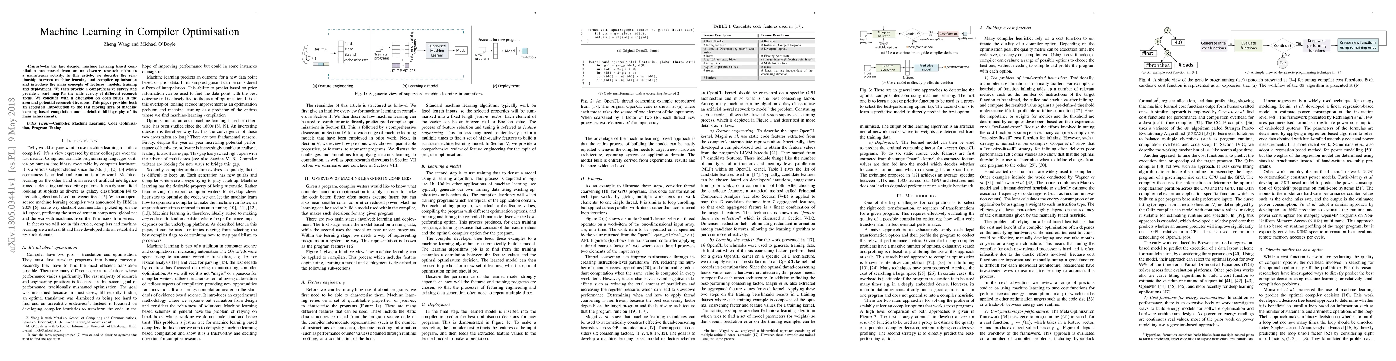 This paper explores the integration of machine learning in compiler optimization, detailing concepts like features, models, and training, and surveys various research areas. It concludes with open issues and potential future research directions, offering both an accessible introduction and a comprehensive bibliography.