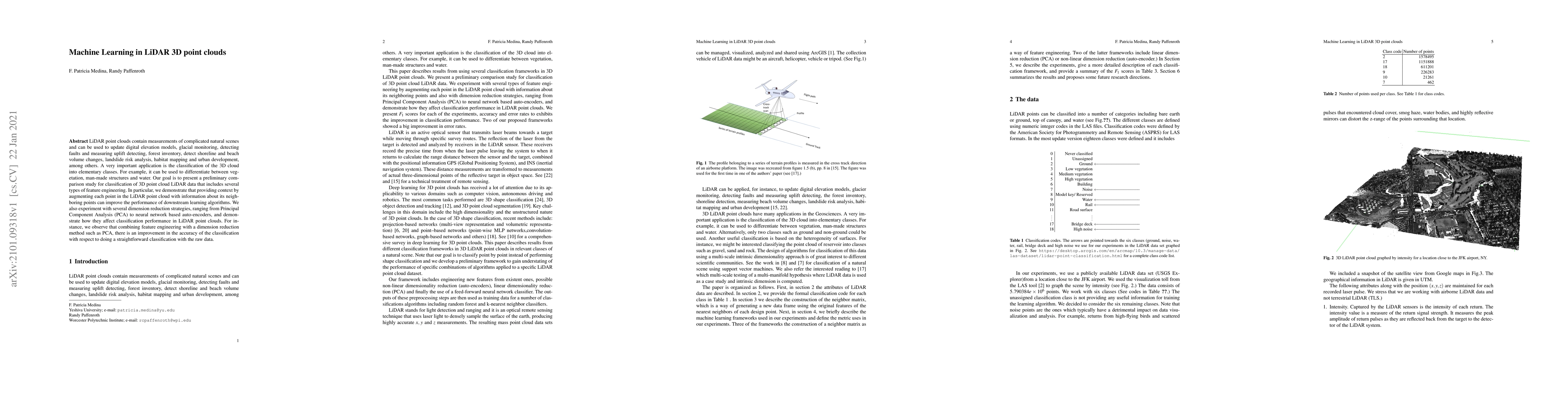 This paper explores the application of machine learning techniques to classify LiDAR 3D point clouds, focusing on feature engineering and dimension reduction methods. The study demonstrates that augmenting point data with contextual information from neighboring points enhances classification performance.