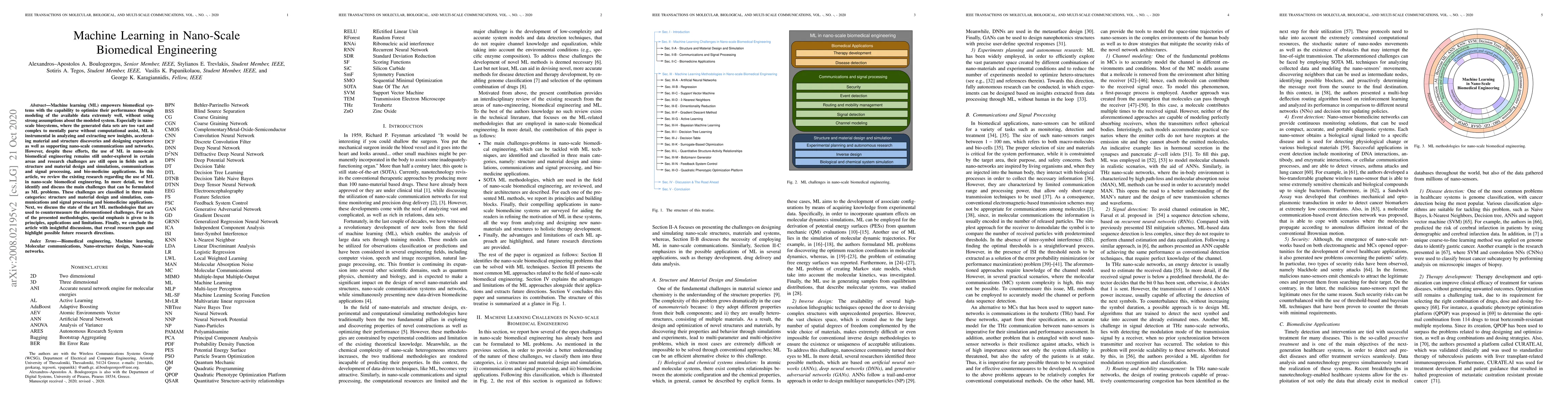 Machine learning empowers nano-scale biomedical engineering by analyzing vast data sets, accelerating discoveries, but research challenges remain in areas like material design and bio-medicine applications. This paper reviews existing ML research and identifies gaps for future directions.