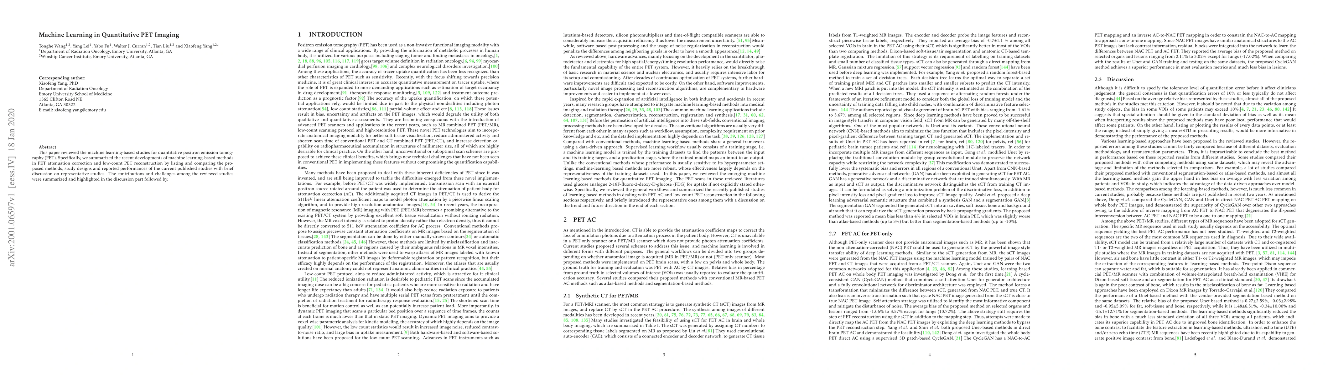 This paper reviewed recent developments in machine learning for PET imaging, focusing on attenuation correction and low-count reconstruction methods. It summarized key findings and challenges among the studies, providing insights into the current state of quantitative PET imaging.