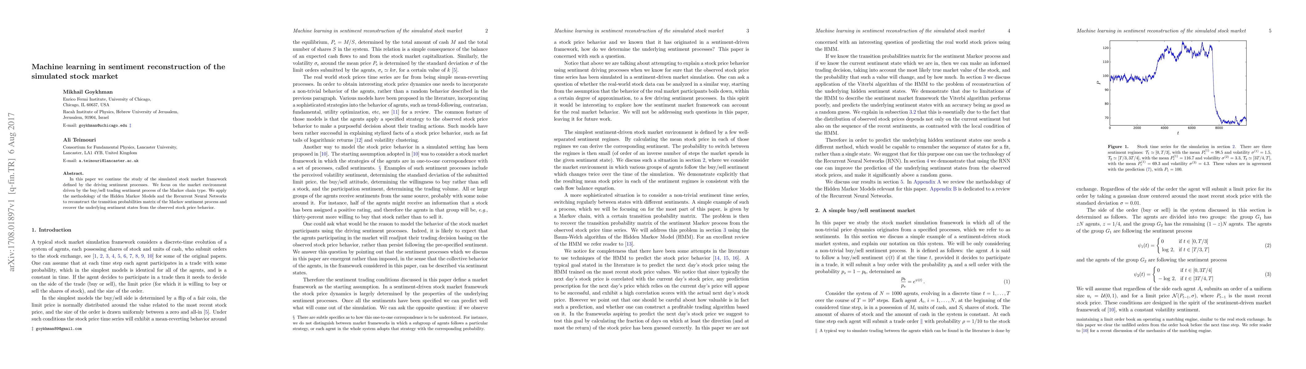 This paper applies Hidden Markov Models and Recurrent Neural Networks to reconstruct the transition probabilities of a Markov chain-driven simulated stock market, aiming to recover underlying sentiment states from observed stock price behavior.