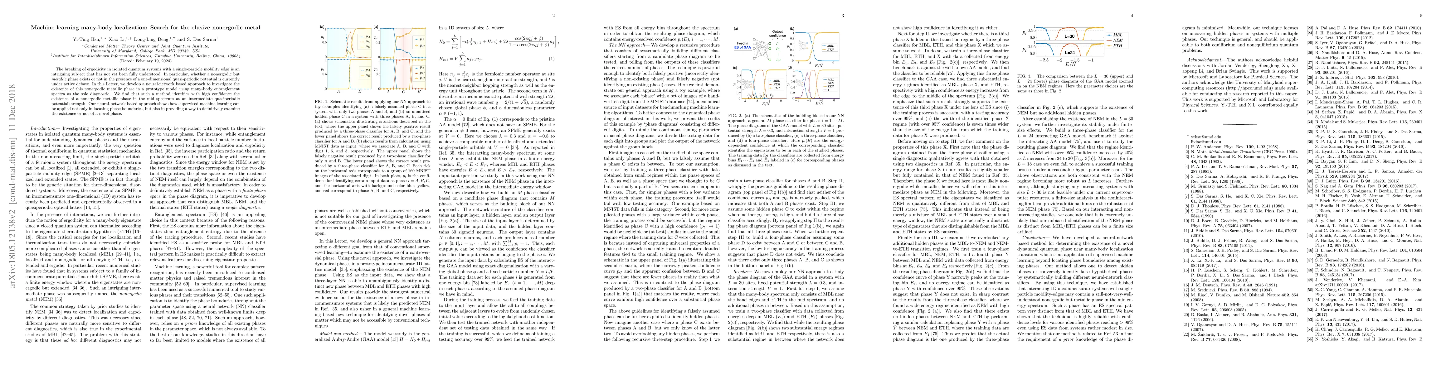 Researchers develop a machine learning approach to study a nonergodic metallic phase in isolated quantum systems with one-dimensional quasipericodical potential. They find evidence of the existence of this phase using many-body entanglement spectra.