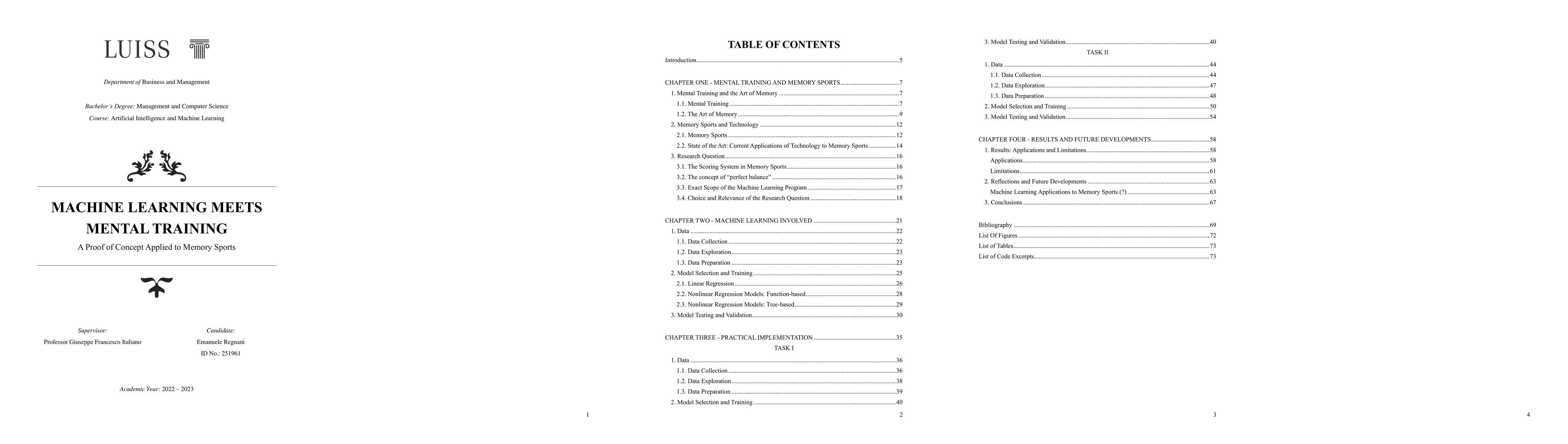 This work aims to combine these two fields together by presenting a practical implementation of machine learning to the particular form of mental training that is the art of memory, taken in its competitive version called "Memory Sports". Such a fusion, on the one hand, strives to raise awareness about both realms, while on the other it seeks to encourage research in this mixed field as a way to, ultimately, drive forward the development of this seemingly underestimated sport.