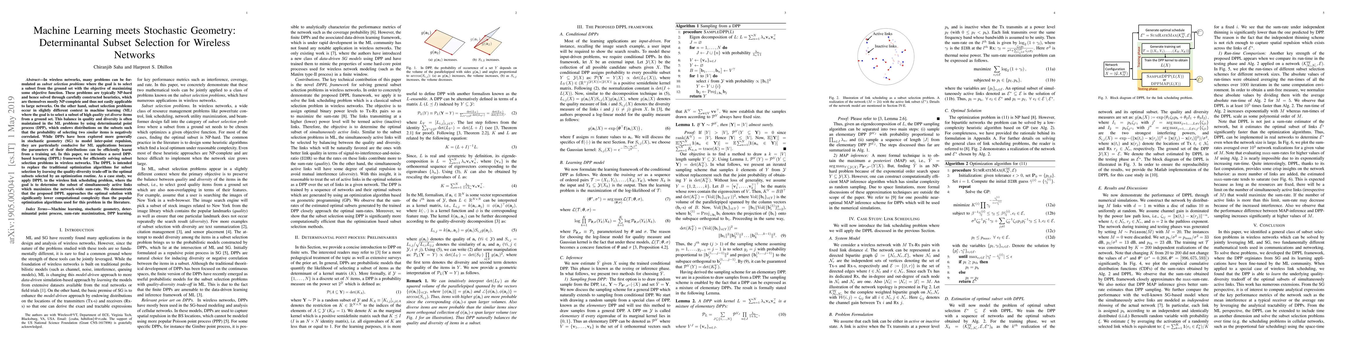 In wireless networks, many problems can be formulated as subset selection problems where the goal is to select a subset from the ground set with the objective of maximizing some objective function. These problems are typically NP-hard and hence solved through carefully constructed heuristics, which are themselves mostly NP-complete and thus not easily applicable to large networks. On the other hand, subset selection problems occur in slightly different context in machine learning (ML) where the goal is to select a subset of high quality yet diverse items from a ground set. In this paper, we introduce a novel DPP-based learning (DPPL) framework for efficiently solving subset selection problems in wireless networks. The DPPL is intended to replace the traditional optimization algorithms for subset selection by learning the quality-diversity trade-off in the optimal subsets selected by an optimization routine. As a case study, we apply DPPL to the wireless link scheduling problem, where the goal is to determine the subset of simultaneously active links which maximizes the network-wide sum-rate. We demonstrate that the proposed DPPL approaches the optimal solution with significantly lower computational complexity than the popular optimization algorithms used for this problem in the literature.