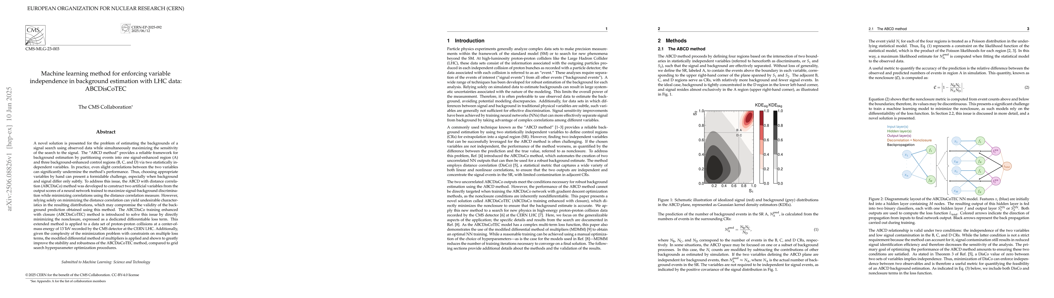 A new machine learning method, ABCDisCoTEC, is proposed to estimate backgrounds in particle physics experiments while maximizing signal sensitivity. It uses artificial variables to minimize correlations between background estimates, improving stability and robustness over traditional methods.