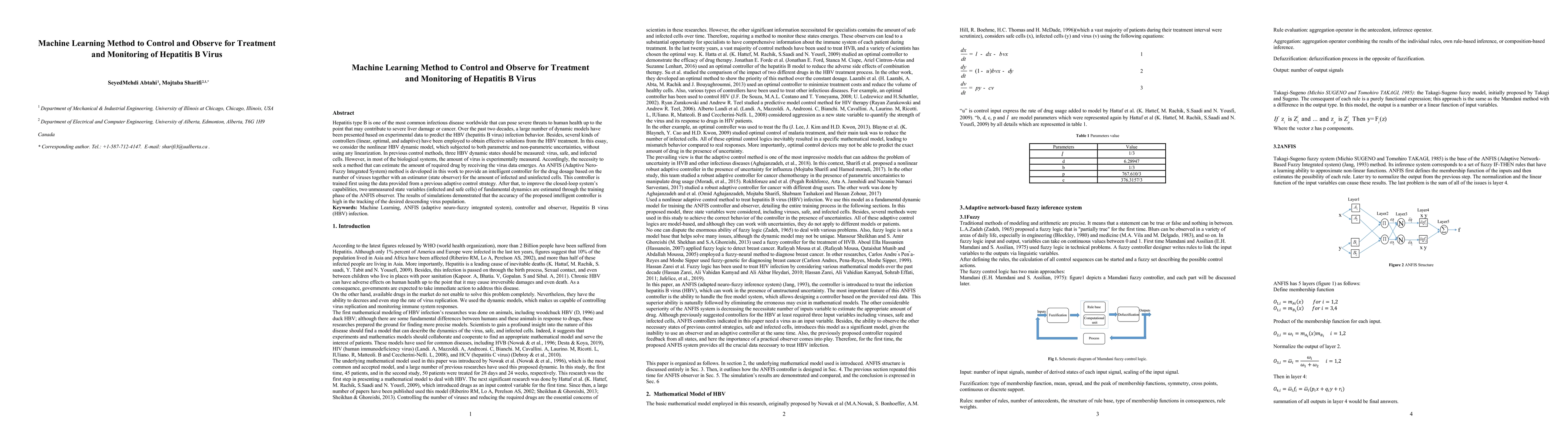 This paper proposes an ANFIS-based intelligent controller to manage Hepatitis B Virus (HBV) treatment by estimating the drug dosage from virus data, without requiring direct measurement of infected cells. The controller and estimator are trained using data from previous adaptive control strategies, demonstrating high accuracy in reducing the virus population.