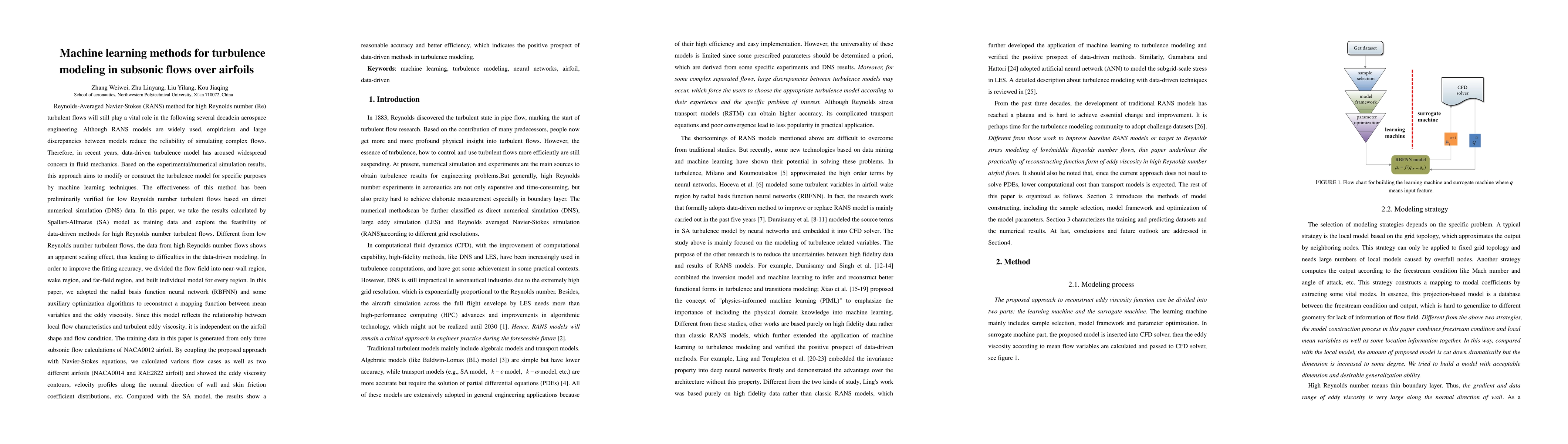 This paper uses machine learning to improve turbulence modeling in subsonic airfoil flows, achieving better accuracy and efficiency compared to existing methods.