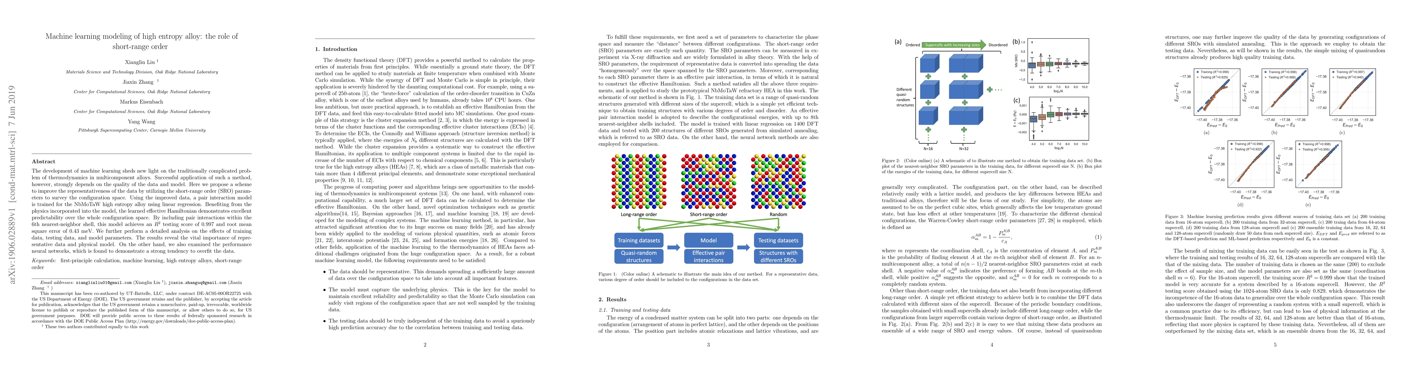This paper proposes a machine learning model to predict the thermodynamics of NbMoTaW high entropy alloy, emphasizing the role of short-range order parameters to improve data representativeness. The trained linear regression model achieves high accuracy, highlighting the importance of representative data and physical model constraints.