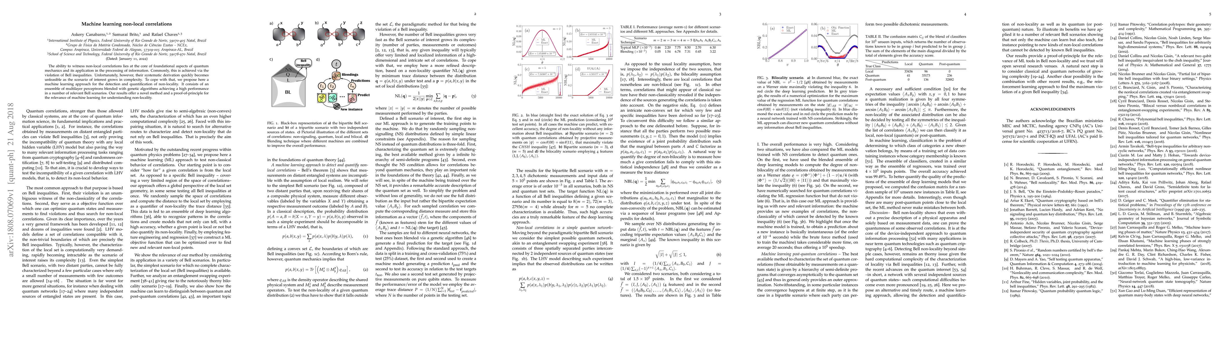 The ability to witness non-local correlations lies at the core of foundational aspects of quantum mechanics and its application in the processing of information. Commonly, this is achieved via the violation of Bell inequalities. Unfortunately, however, their systematic derivation quickly becomes unfeasible as the scenario of interest grows in complexity. To cope with that, we propose here a machine learning approach for the detection and quantification of non-locality. It consists of an ensemble of multilayer perceptrons blended with genetic algorithms achieving a high performance in a number of relevant Bell scenarios. Our results offer a novel method and a proof-of-principle for the relevance of machine learning for understanding non-locality.