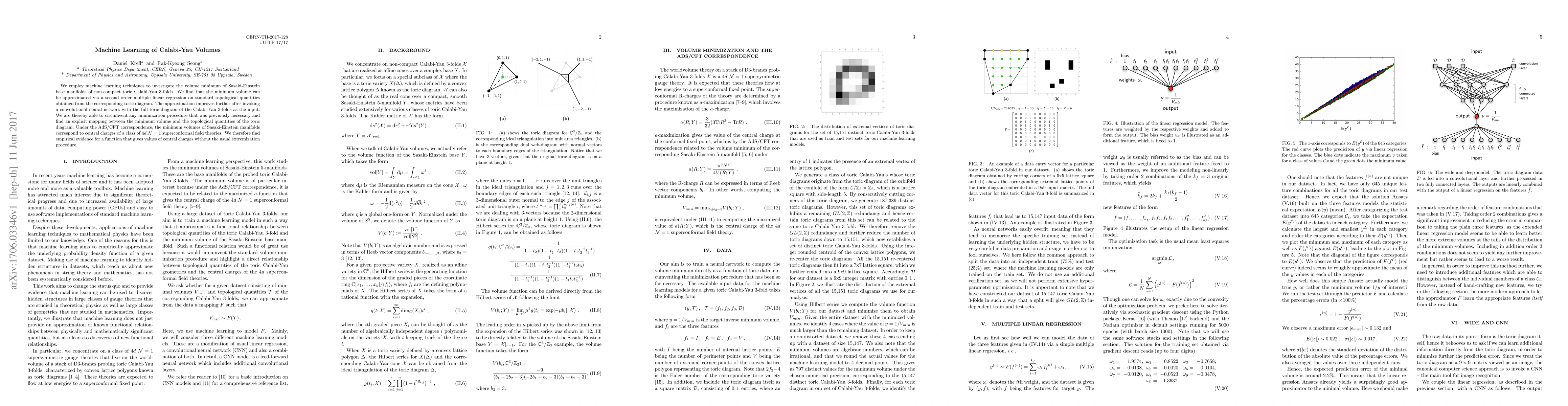 We employ machine learning techniques to investigate the volume minimum of Sasaki-Einstein base manifolds of non-compact toric Calabi-Yau 3-folds. We find that the minimum volume can be approximated via a second order multiple linear regression on standard topological quantities obtained from the corresponding toric diagram. The approximation improves further after invoking a convolutional neural network with the full toric diagram of the Calabi-Yau 3-folds as the input. We are thereby able to circumvent any minimization procedure that was previously necessary and find an explicit mapping between the minimum volume and the topological quantities of the toric diagram. Under the AdS/CFT correspondence, the minimum volumes of Sasaki-Einstein manifolds correspond to central charges of a class of 4d N=1 superconformal field theories. We therefore find empirical evidence for a function that gives values of central charges without the usual extremization procedure.
