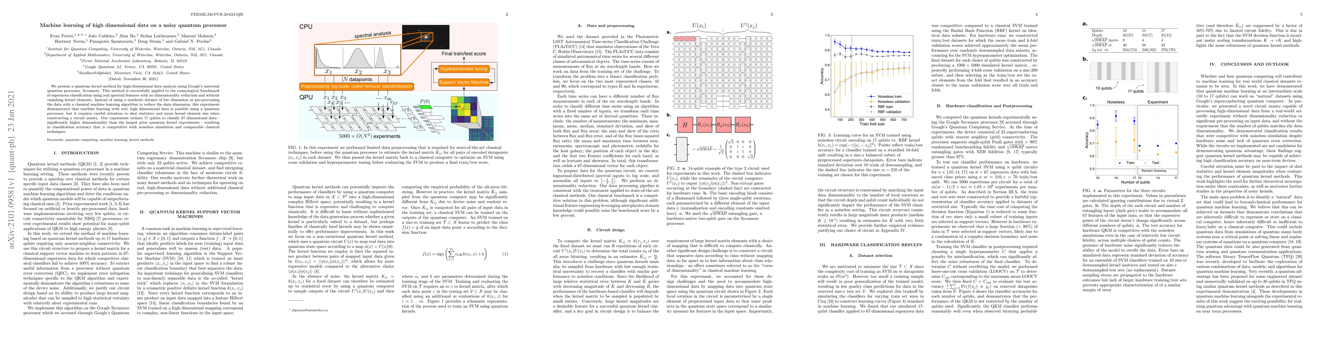 This work shows the feasibility of using quantum processors for machine learning tasks on real, high-dimensional data, paving the way for future quantum machine learning applications.