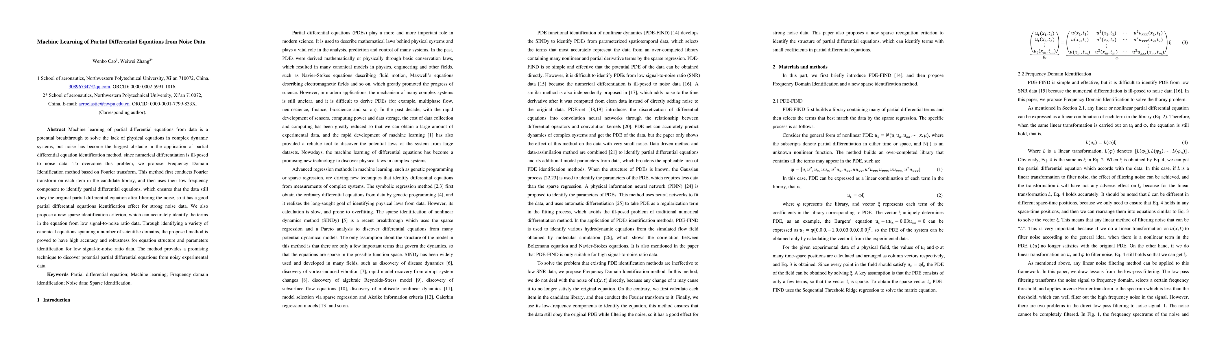 This paper proposes a Frequency Domain Identification method using Fourier transforms to learn partial differential equations from noisy data, overcoming the ill-posedness of numerical differentiation. It introduces a sparse identification criterion for accurate term identification, demonstrating high accuracy and robustness across various scientific domains.