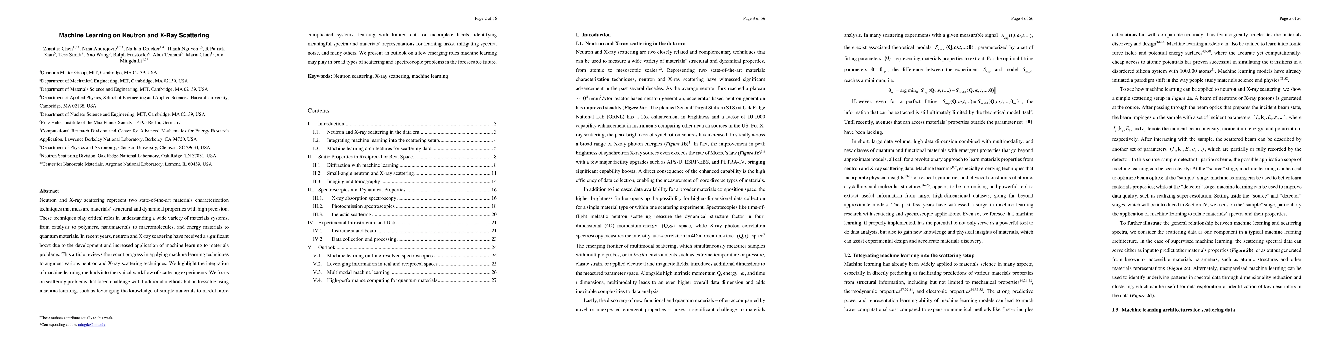 This paper reviews the integration of machine learning techniques to enhance neutron and X-ray scattering methods, focusing on overcoming traditional challenges such as modeling complex systems, working with limited data, and mitigating spectral noise. It also outlines future potential applications of machine learning in scattering and spectroscopic analyses.
