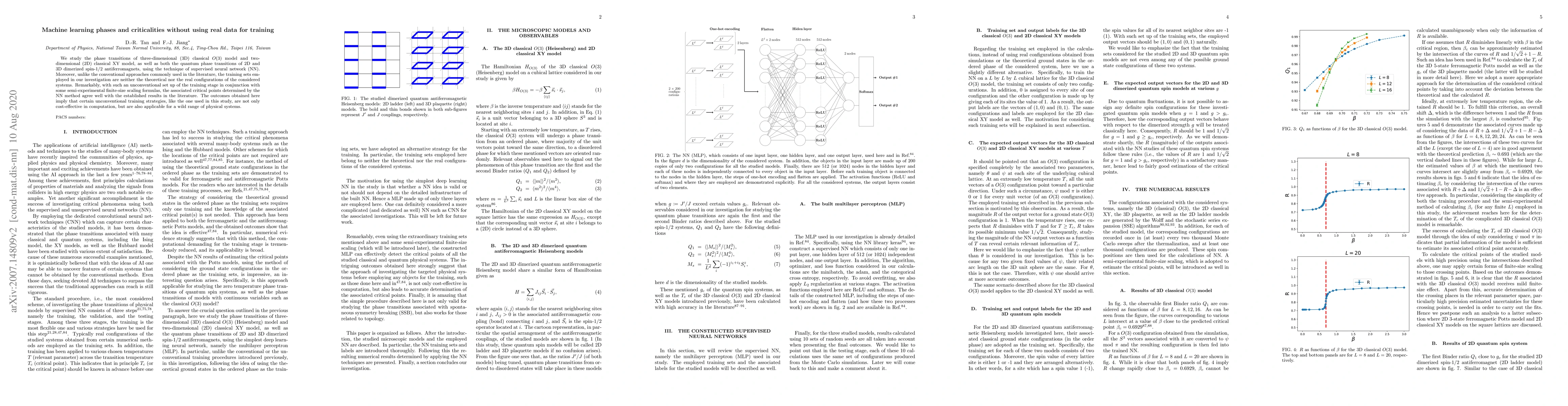 We study the phase transitions of three-dimensional (3D) classical O(3) model and the two-dimensional (2D) classical XY model, as well as both the quantum phase transitions of 2D and 3D dimerized spin-1/2 antiferromagnets, using the techniques of supervised neural network (NN). Moreover, unlike the conventional approaches commonly used in the literature, the training sets employed in our investigation are neither the theoretical nor the real configurations of the considered systems. Remarkably, with such an unconventional set up of the training stage in conjunction with semi-experimental finite-size scaling formulas, the associated critical points determined by the NN method agree well with the established results in the literature. The outcomes obtained here imply that certain unconventional training strategies, like the one used in this study, are not only cost-effective in computation, but are also applicable for a wild range of physical systems.