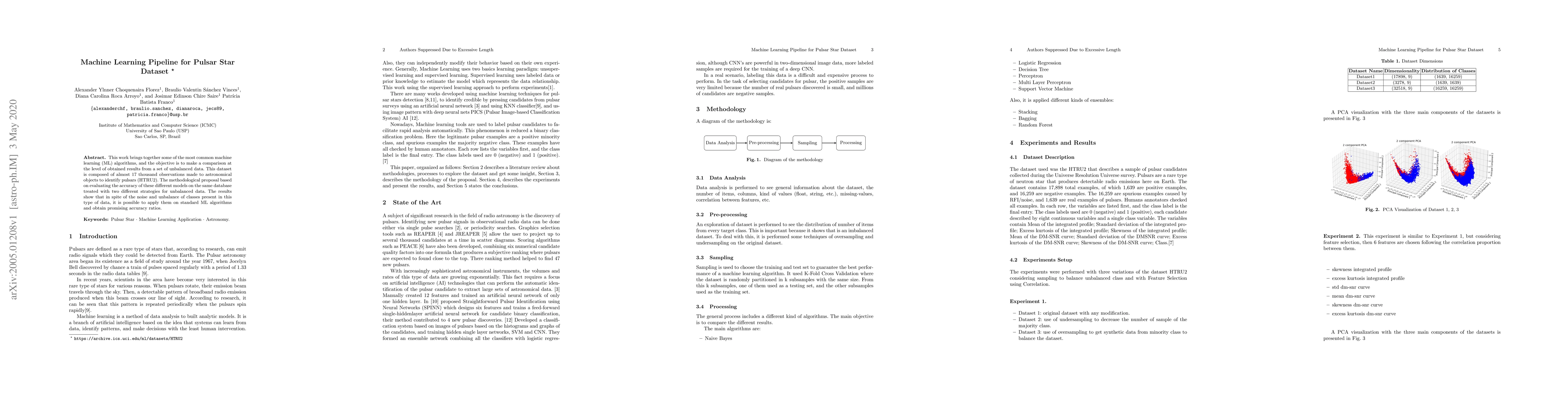 This research compares the performance of various machine learning algorithms on an unbalanced pulsar star dataset, demonstrating that despite noise and class imbalance, these algorithms can yield promising accuracy.