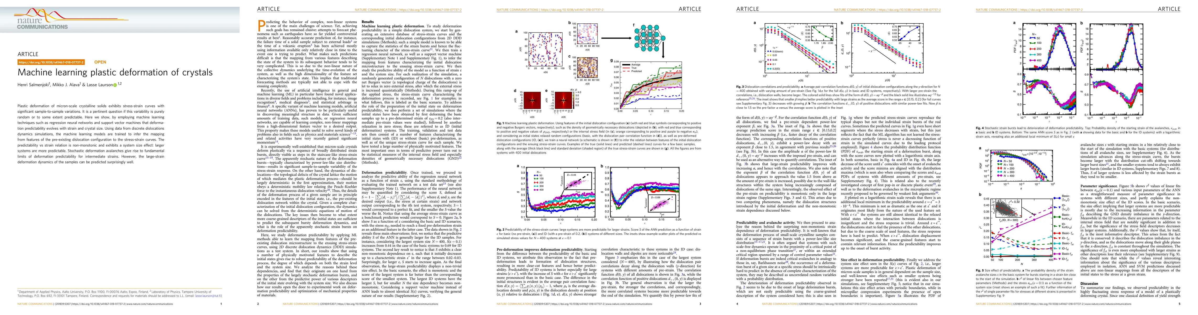 Researchers used machine learning to analyze data from simulations of crystalline solids' plastic deformation, finding that predictability improves with strain and crystal size, but has fundamental limits at intermediate strains.
