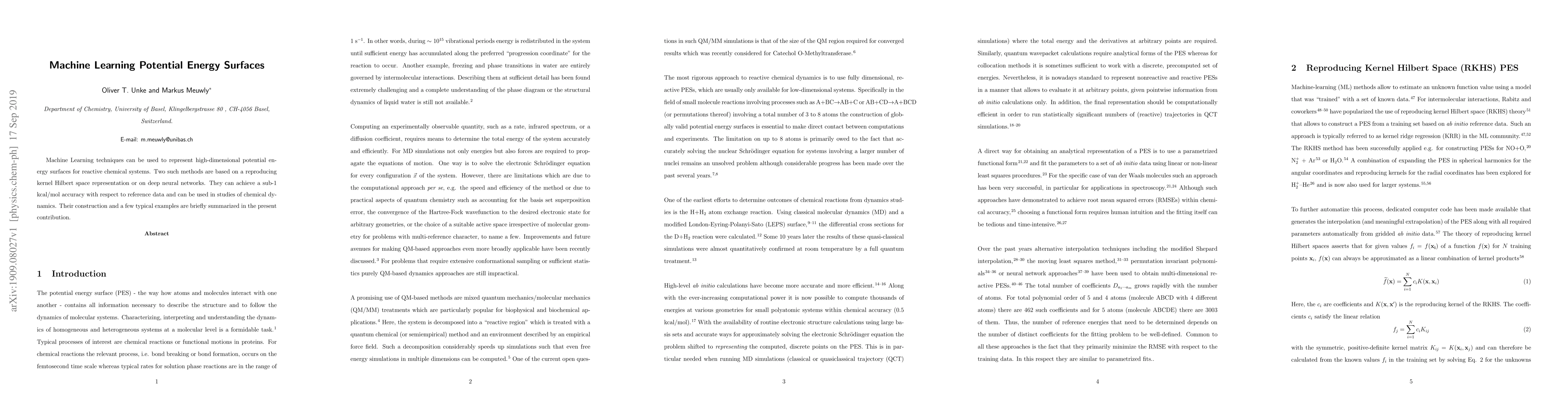Researchers have developed machine learning models to represent high-dimensional potential energy surfaces for chemical systems with high accuracy, achieving sub-1 kcal/mol accuracy in some cases.