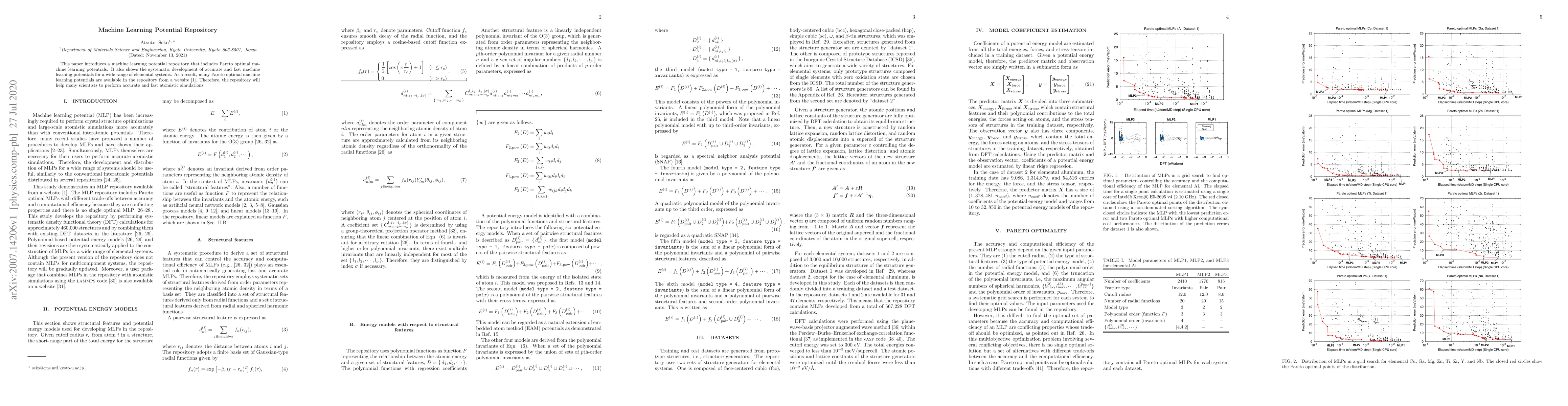 This paper presents a machine learning potential repository featuring Pareto optimal machine learning potentials, facilitating accurate and fast atomistic simulations for various elemental systems. The repository aims to assist scientists in conducting efficient simulations through its systematic development and availability on a dedicated website.