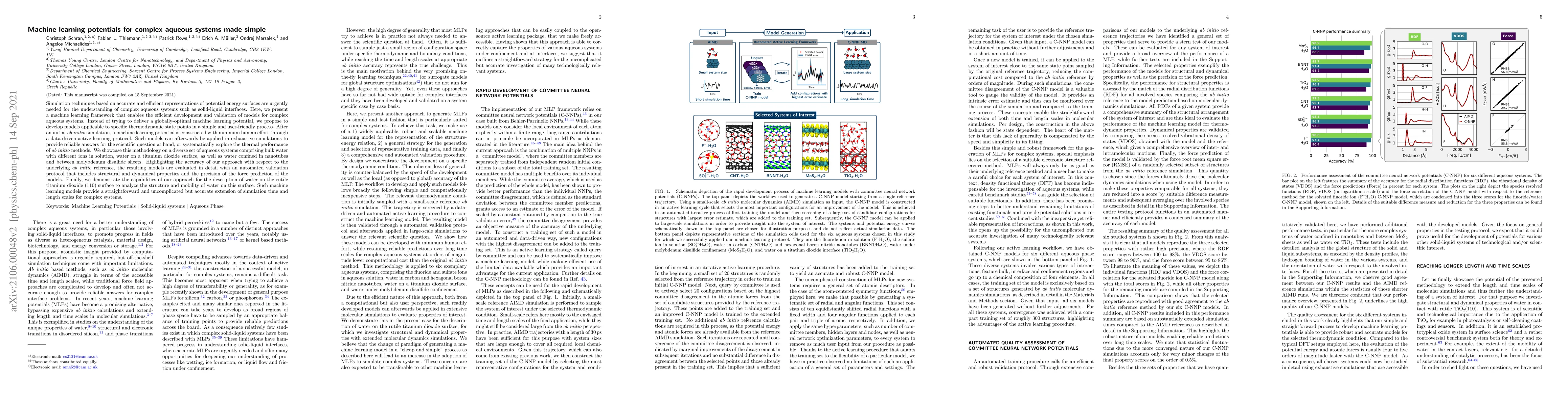 This paper introduces a machine learning framework for developing efficient models to simulate complex aqueous systems, focusing on specific thermodynamic states. The proposed method uses active learning to construct models from initial ab initio simulations, enabling accurate simulations of systems like water with ions, water on titanium dioxide surfaces, and water in nanotubes and between molybdenum disulfide sheets.
