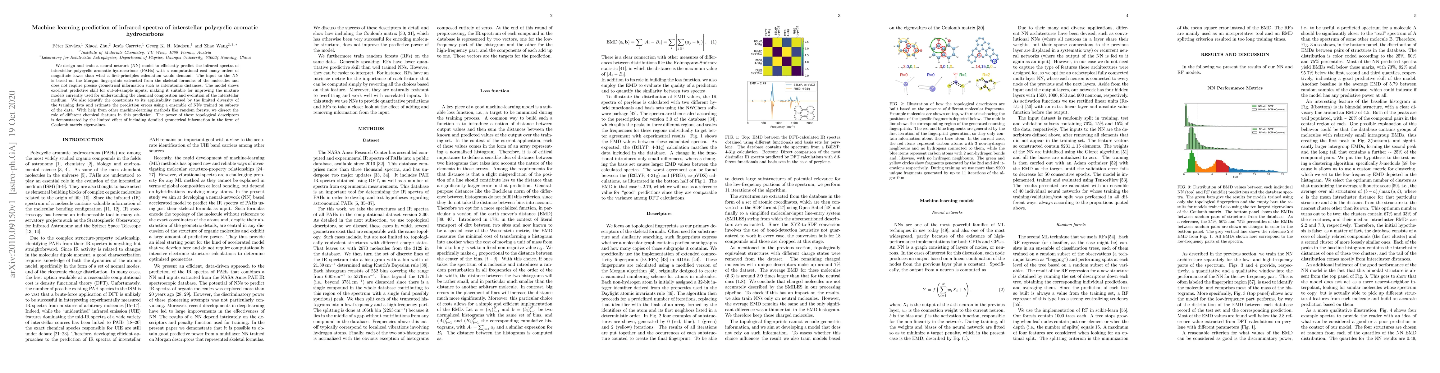 This paper develops a neural network model to predict the infrared spectra of interstellar polycyclic aromatic hydrocarbons (PAHs) at a significantly lower computational cost than traditional methods. The model's success is attributed to the use of Morgan fingerprints as input, highlighting the importance of topological features over detailed geometrical information.