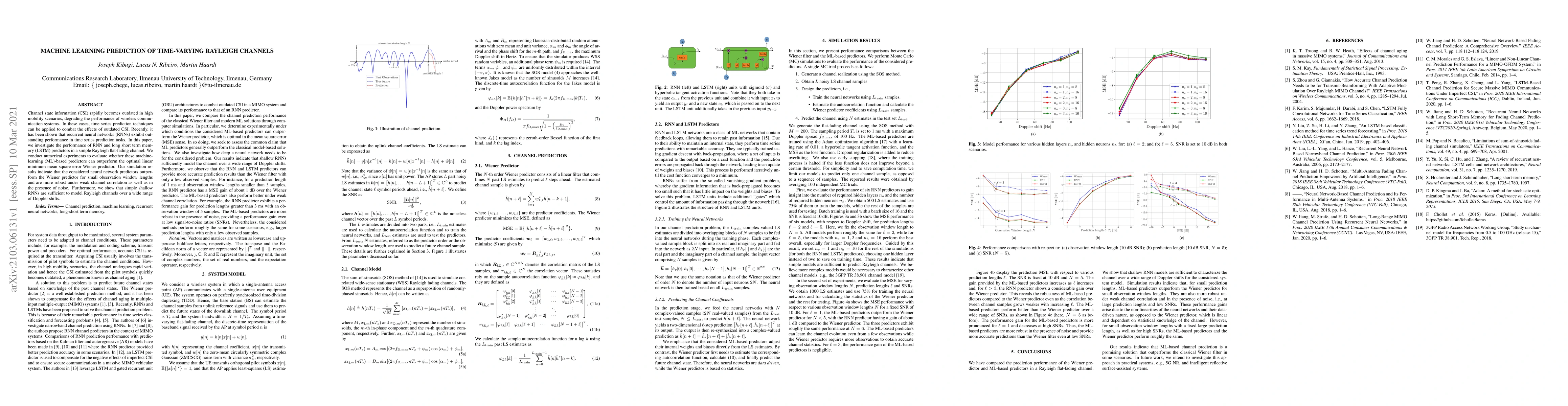 This paper explores the use of recurrent neural networks (RNNs) and long short-term memory (LSTM) predictors for improving wireless communication in high mobility scenarios where channel state information (CSI) quickly becomes outdated. Results show that these machine learning-based predictors outperform the traditional linear Wiener predictor, especially with small observation window lengths, weak channel correlation, and in noisy conditions. The study also finds that simple shallow RNNs can effectively model Rayleigh channels across various Doppler shifts.