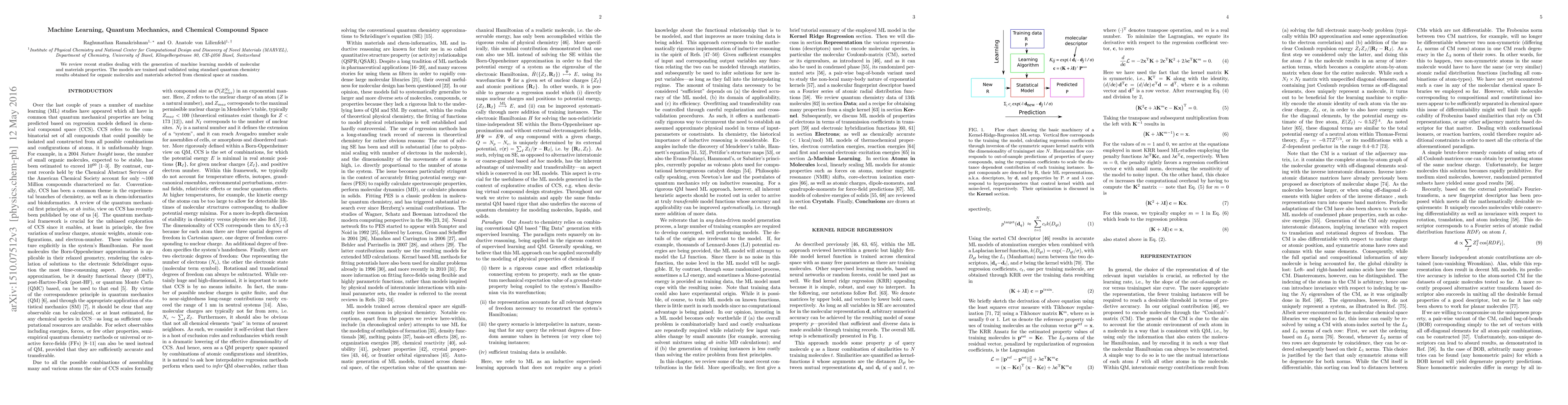 We review recent studies dealing with the generation of machine learning models of molecular and solid properties. The models are trained and validated using standard quantum chemistry results obtained for organic molecules and materials selected from chemical space at random.
