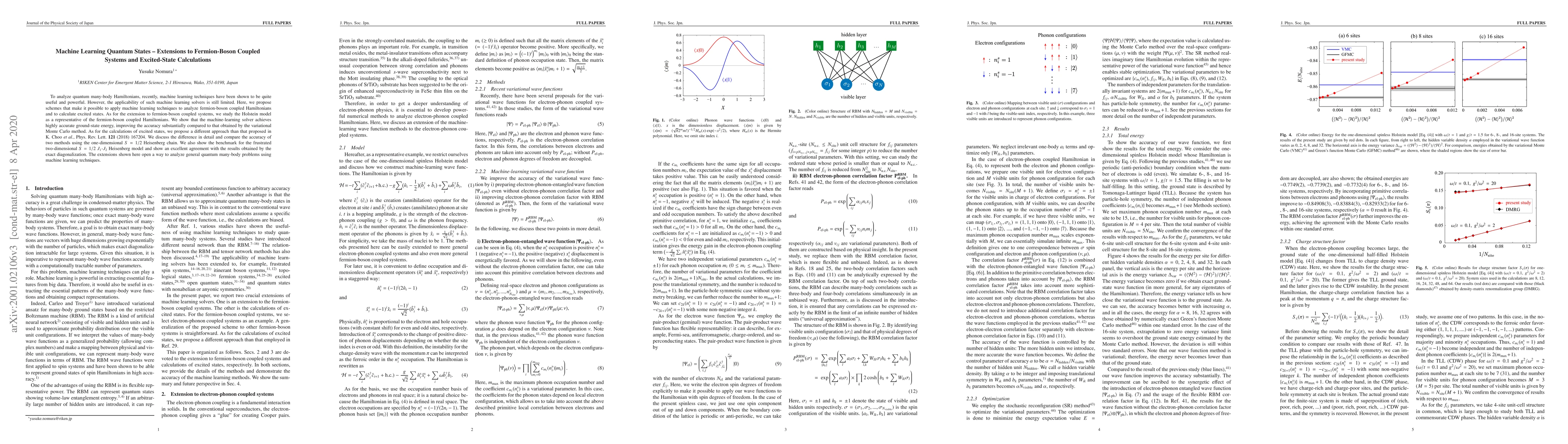 This paper proposes advanced machine learning techniques to analyze fermion-boson coupled Hamiltonians and calculate excited states, demonstrating significant improvements over traditional methods using the Holstein model and Heisenberg chains. The new methods show highly accurate results, paving the way for broader applications of machine learning in quantum many-body physics.