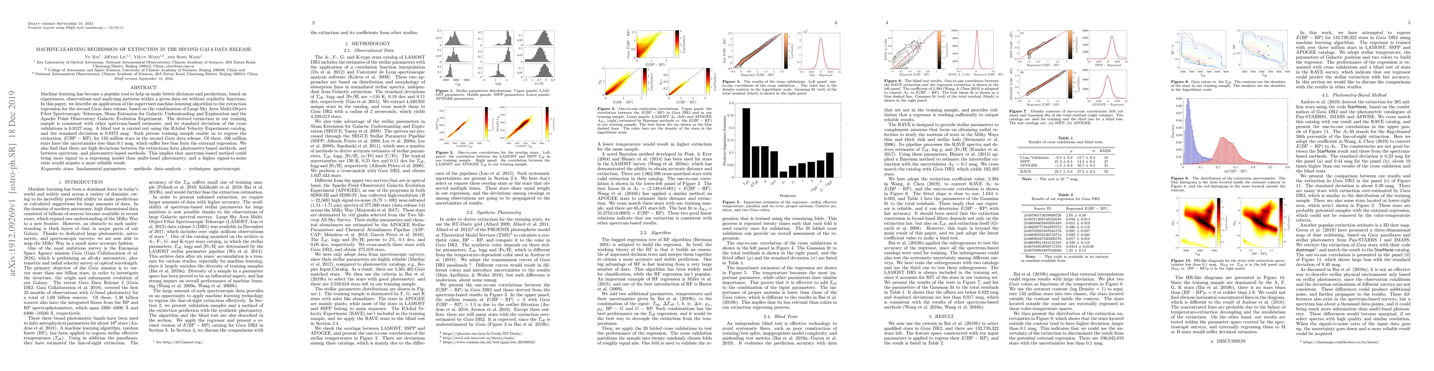 Machine learning has become a popular tool to help us make better decisions and predictions, based on experiences, observations and analysing patterns within a given data set without explicitly functions. In this paper, we describe an application of the supervised machine-learning algorithm to the extinction regression for the second Gaia data release, based on the combination of Large Sky Area Multi-Object Fiber Spectroscopic Telescope, Sloan Extension for Galactic Understanding and Exploration and the Apache Point Observatory Galactic Evolution Experiment. The derived extinction in our training sample is consistent with other spectrum-based estimates, and its standard deviation of the cross validations is 0.0127 mag. A blind test is carried out using the RAdial Velocity Experiment catalog, and the standard deviation is 0.0372 mag. Such precise training sample enable us to regress the extinction, E(BP-RP), for 133 million stars in the second Gaia data release. Of these, 106 million stars have the uncertainties less than 0.1 mag, which suffer less bias from the external regression. We also find that there are high deviations between the extinctions form photometry-based methods, and between spectrum- and photometry-based methods. This implies that spectrum-based method could bring more signal to a regressing model than multi-band photometry, and a higher signal-to-noise ratio would acquire a more reliable result.