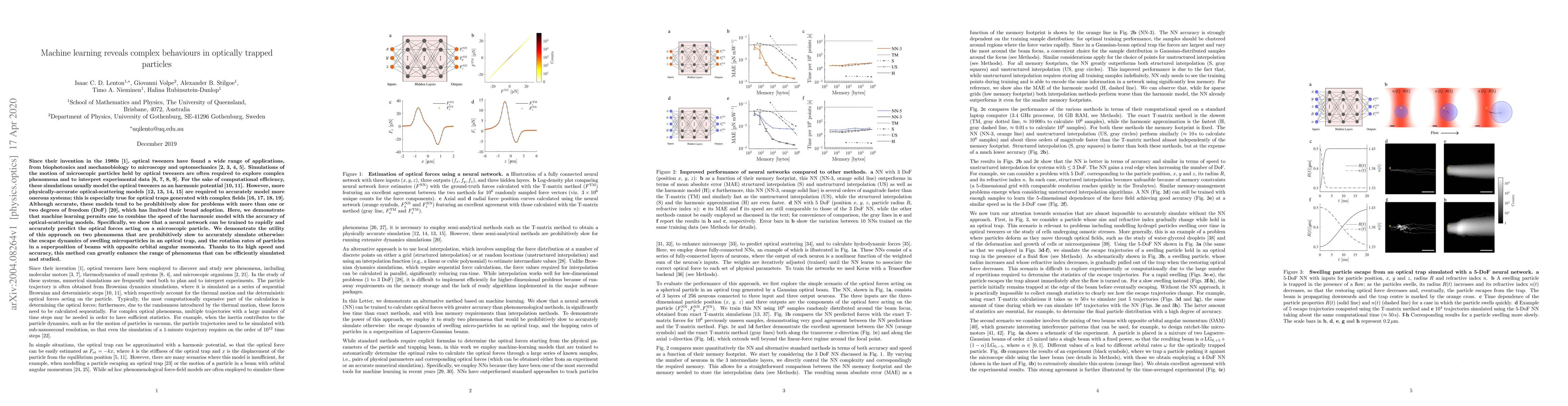 Since their invention in the 1980s [1], optical tweezers have found a wide range of applications, from biophotonics and mechanobiology to microscopy and optomechanics [2, 3, 4, 5]. Simulations of the motion of microscopic particles held by optical tweezers are often required to explore complex phenomena and to interpret experimental data [6, 7, 8, 9]. For the sake of computational efficiency, these simulations usually model the optical tweezers as an harmonic potential [10, 11]. However, more physically-accurate optical-scattering models [12, 13, 14, 15] are required to accurately model more onerous systems; this is especially true for optical traps generated with complex fields [16, 17, 18, 19]. Although accurate, these models tend to be prohibitively slow for problems with more than one or two degrees of freedom (DoF) [20], which has limited their broad adoption. Here, we demonstrate that machine learning permits one to combine the speed of the harmonic model with the accuracy of optical-scattering models. Specifically, we show that a neural network can be trained to rapidly and accurately predict the optical forces acting on a microscopic particle. We demonstrate the utility of this approach on two phenomena that are prohibitively slow to accurately simulate otherwise: the escape dynamics of swelling microparticles in an optical trap, and the rotation rates of particles in a superposition of beams with opposite orbital angular momenta. Thanks to its high speed and accuracy, this method can greatly enhance the range of phenomena that can be efficiently simulated and studied.