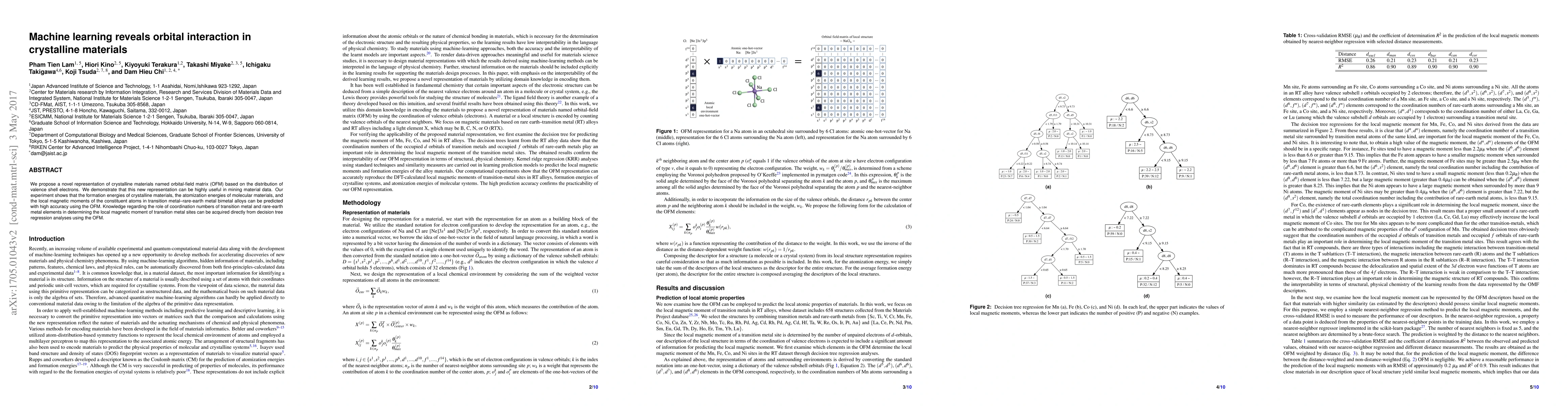 We propose a novel representation of crystalline materials named orbital-field matrix (OFM) based on the distribution of valence shell electrons. We demonstrate that this new representation can be highly useful in mining material data. Our experiment shows that the formation energies of crystalline materials, the atomization energies of molecular materials, and the local magnetic moments of the constituent atoms in transition metal--rare-earth metal bimetal alloys can be predicted with high accuracy using the OFM. Knowledge regarding the role of coordination numbers of transition-metal and rare-earth metal elements in determining the local magnetic moment of transition metal sites can be acquired directly from decision tree regression analyses using the OFM.