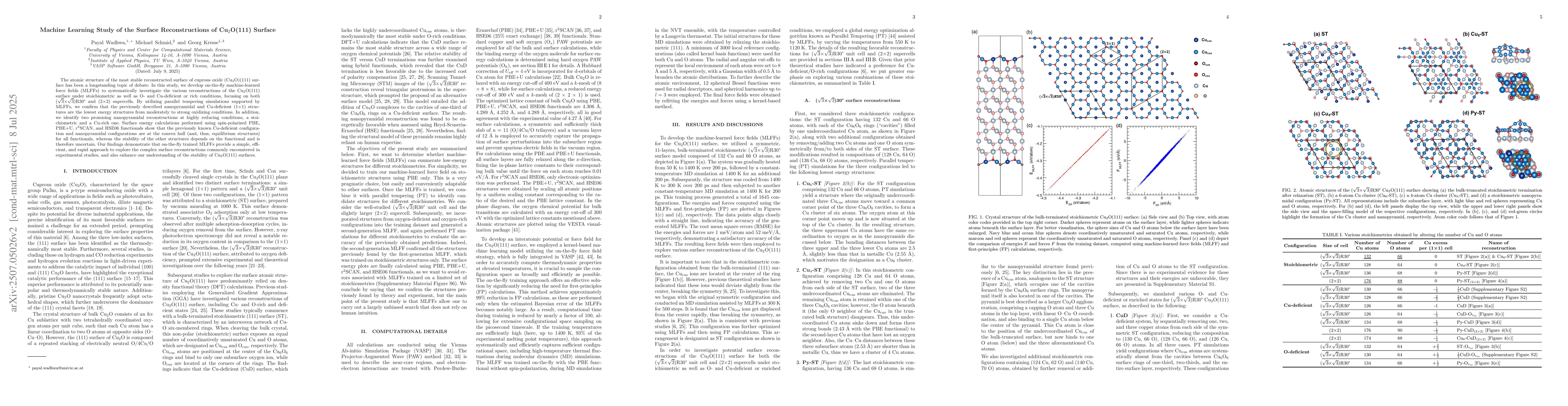 The atomic structure of the most stable reconstructed surface of cuprous oxide (Cu$_{2}$O)(111) surface has been a longstanding topic of debate. In this study, we develop on-the-fly machine-learned force fields (MLFFs) to systematically investigate the various reconstructions of the Cu$_{2}$O(111) surface under stoichiometric as well as O- and Cu-deficient or rich conditions, focusing on both ($\sqrt{3}$$\times$$\sqrt{3}$)R30{\deg} and (2$\times$2) supercells. By utilizing parallel tempering simulations supported by MLFFs, we confirm that the previously described nanopyramidal and Cu-deficient (1$\times$1) structures are the lowest energy structures from moderately to strong oxidizing conditions. In addition, we identify two promising nanopyramidal reconstructions at highly reducing conditions, a stoichiometric and a Cu-rich one. Surface energy calculations performed using spin-polarized PBE, PBE+U, r$^{2}$SCAN, and HSE06 functionals show that the previously known Cu-deficient configuration and nanopyramidal configurations are at the convex hull (and, thus, equilibrium structures) for all functionals, whereas the stability of the other structures depends on the functional and is therefore uncertain. Our findings demonstrate that on-the-fly trained MLFFs provide a simple, efficient, and rapid approach to explore the complex surface reconstructions commonly encountered in experimental studies, and also enhance our understanding of the stability of Cu$_{2}$O(111) surfaces.