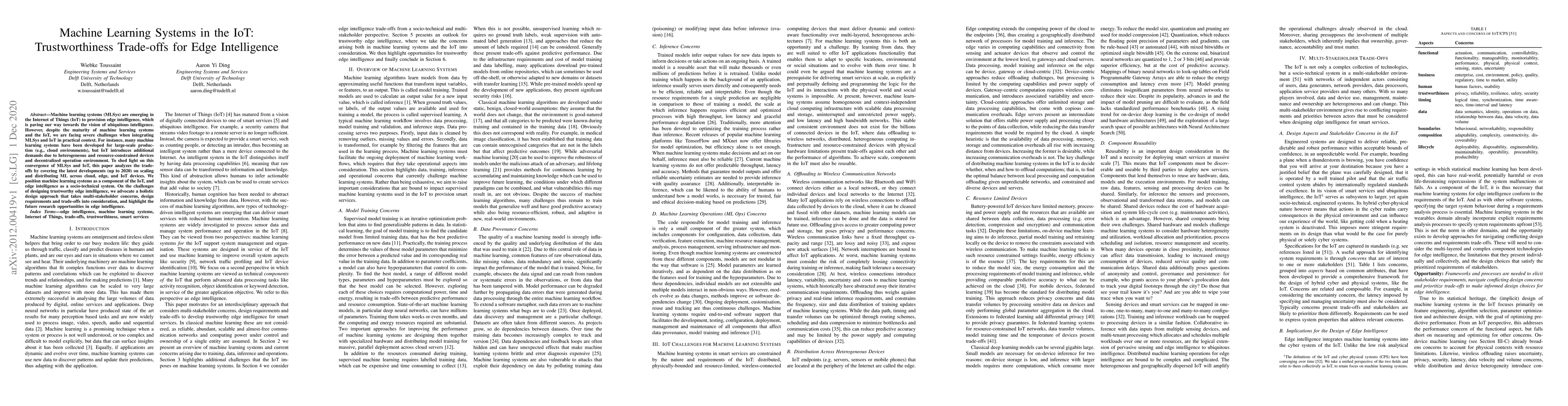 This paper explores the integration of machine learning systems in IoT for edge intelligence, highlighting the challenges of scaling and distributing ML across cloud, edge, and IoT devices. It advocates for a holistic design approach to achieve trustworthy edge intelligence, considering multi-stakeholder concerns and future research opportunities.
