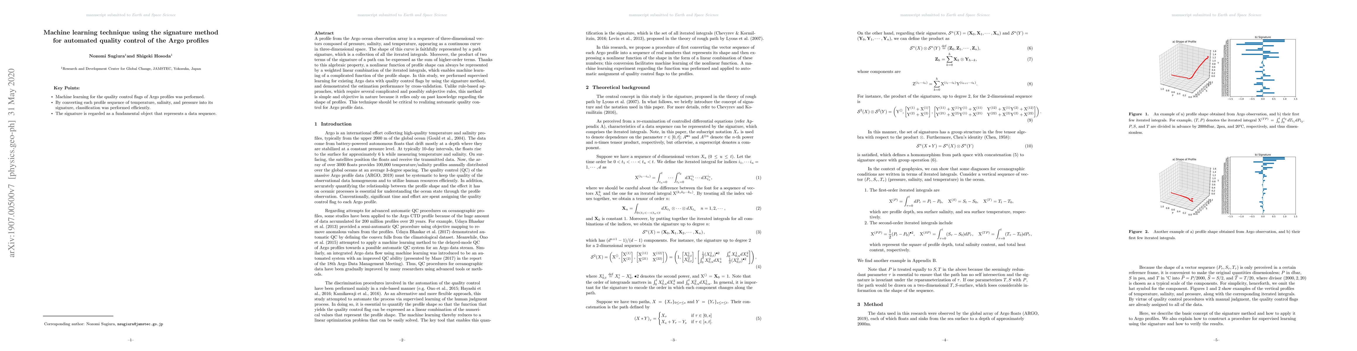 Researchers used a machine learning technique called the signature method to improve the quality control of Argo ocean observation array data. The method demonstrated accurate estimation performance through cross-validation and offers an objective approach for automatic quality control.