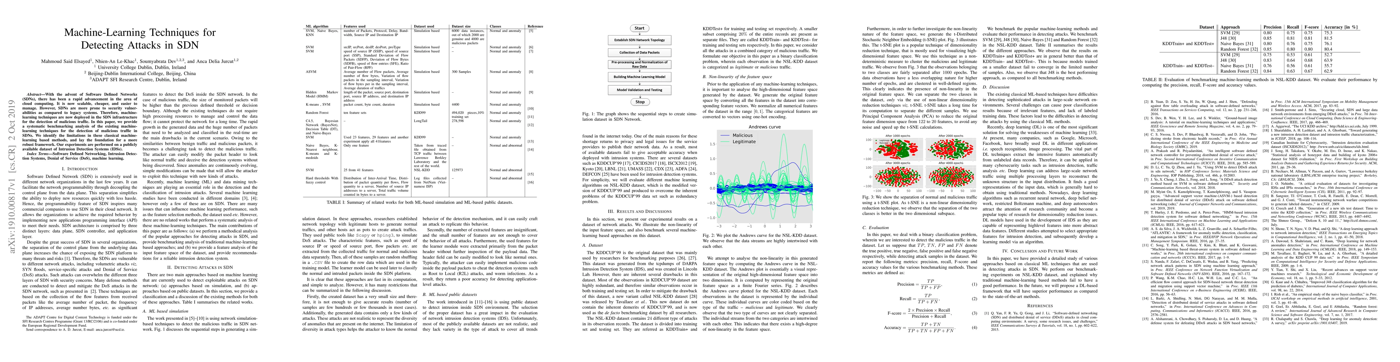 This paper benchmarks machine-learning techniques for detecting attacks in Software Defined Networks (SDNs), identifying limitations in existing methods and proposing a foundation for a more robust framework. Experiments are conducted using a publicly available dataset of Intrusion Detection Systems (IDSs).