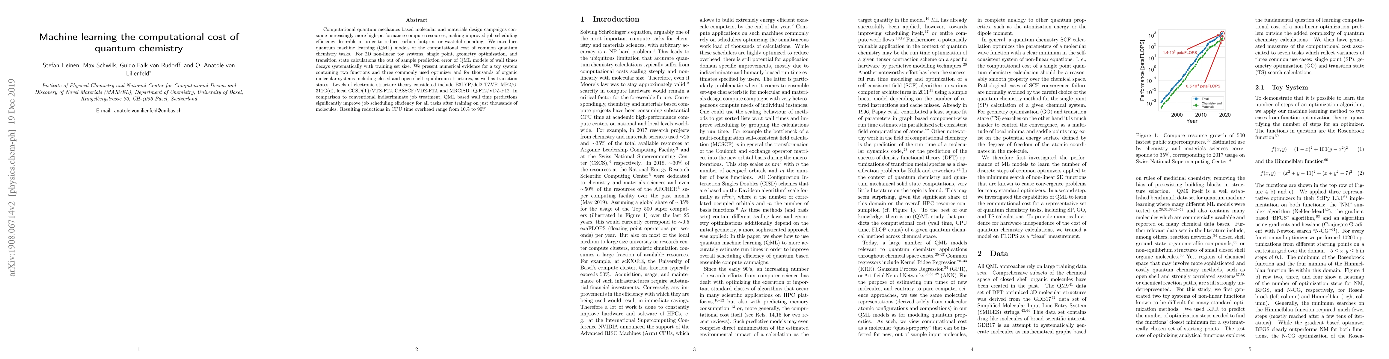 Computational quantum mechanics based molecular and materials design campaigns consume increasingly more high-performance compute resources, making improved job scheduling efficiency desirable in order to reduce carbon footprint or wasteful spending. We introduce quantum machine learning (QML) models of the computational cost of common quantum chemistry tasks. For 2D non-linear toy systems, single point, geometry optimization, and transition state calculations the out of sample prediction error of QML models of wall times decays systematically with training set size. We present numerical evidence for a toy system containing two functions and three commonly used optimizer and for thousands of organic molecular systems including closed and open shell equilibrium structures, as well as transition states. Levels of electronic structure theory considered include B3LYP/def2-TZVP, MP2/6-311G(d), local CCSD(T)/VTZ-F12, CASSCF/VDZ-F12, and MRCISD+Q-F12/VDZ-F12. In comparison to conventional indiscriminate job treatment, QML based wall time predictions significantly improve job scheduling efficiency for all tasks after training on just thousands of molecules. Resulting reductions in CPU time overhead range from 10% to 90%.