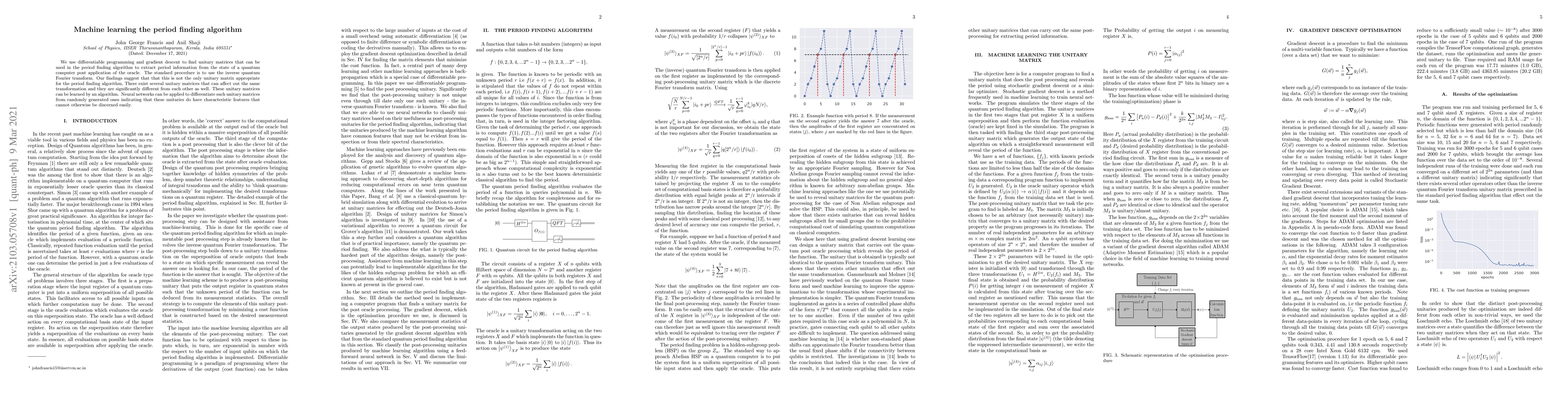 We use differentiable programming and gradient descent to find unitary matrices that can be used in the period finding algorithm to extract period information from the state of a quantum computer post application of the oracle. The standard procedure is to use the inverse quantum Fourier transform. Our findings suggest that that this is not the only unitary matrix appropriate for the period finding algorithm, There exist several unitary matrices that can affect out the same transformation and they are significantly different from each other as well. These unitary matrices can be learned by an algorithm. Neural networks can be applied to differentiate such unitary matrices from randomly generated ones indicating that these unitaries do have characteristic features that cannot otherwise be discerned easily.