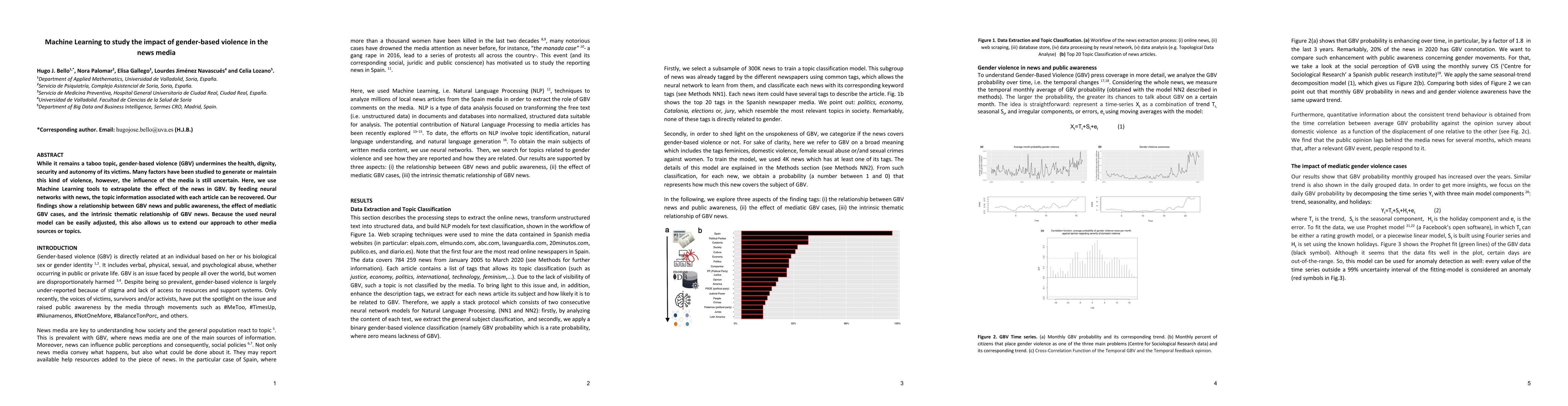 While it remains a taboo topic, gender-based violence (GBV) undermines the health, dignity, security and autonomy of its victims. Many factors have been studied to generate or maintain this kind of violence, however, the influence of the media is still uncertain. Here, we use Machine Learning tools to extrapolate the effect of the news in GBV. By feeding neural networks with news, the topic information associated with each article can be recovered. Our findings show a relationship between GBV news and public awareness, the effect of mediatic GBV cases, and the intrinsic thematic relationship of GBV news. Because the used neural model can be easily adjusted, this also allows us to extend our approach to other media sources or topics