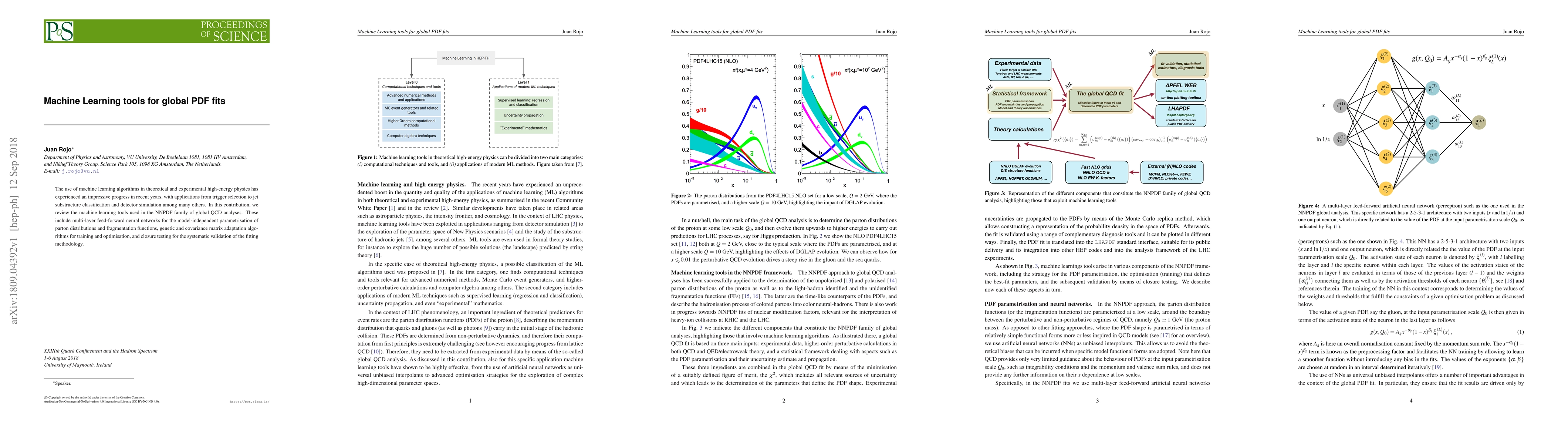 The use of machine learning algorithms in theoretical and experimental high-energy physics has experienced an impressive progress in recent years, with applications from trigger selection to jet substructure classification and detector simulation among many others. In this contribution, we review the machine learning tools used in the NNPDF family of global QCD analyses. These include multi-layer feed-forward neural networks for the model-independent parametrisation of parton distributions and fragmentation functions, genetic and covariance matrix adaptation algorithms for training and optimisation, and closure testing for the systematic validation of the fitting methodology.