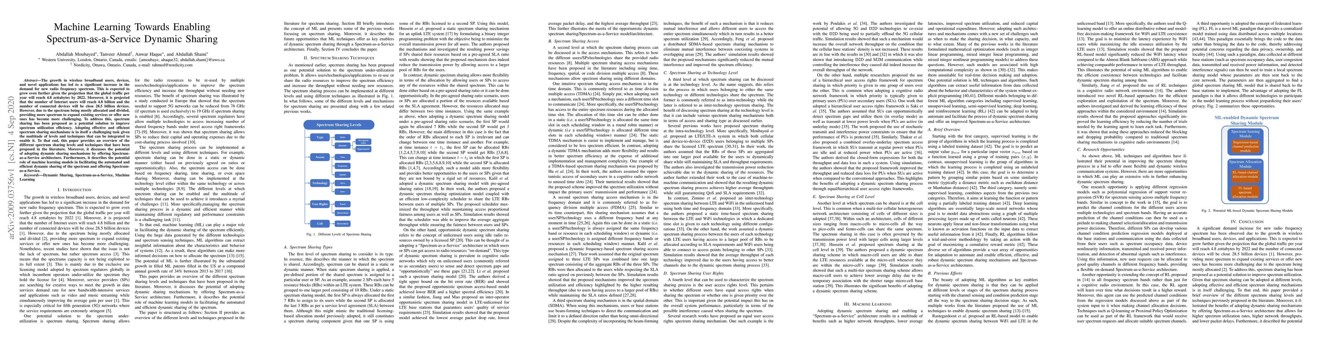 This paper explores spectrum sharing mechanisms to address the growing demand for radio frequency spectrum driven by increasing wireless broadband users and devices. It highlights the potential of machine learning in enabling dynamic Spectrum-as-a-Service, aiming to improve spectrum utilization efficiency through automated and efficient dynamic sharing.