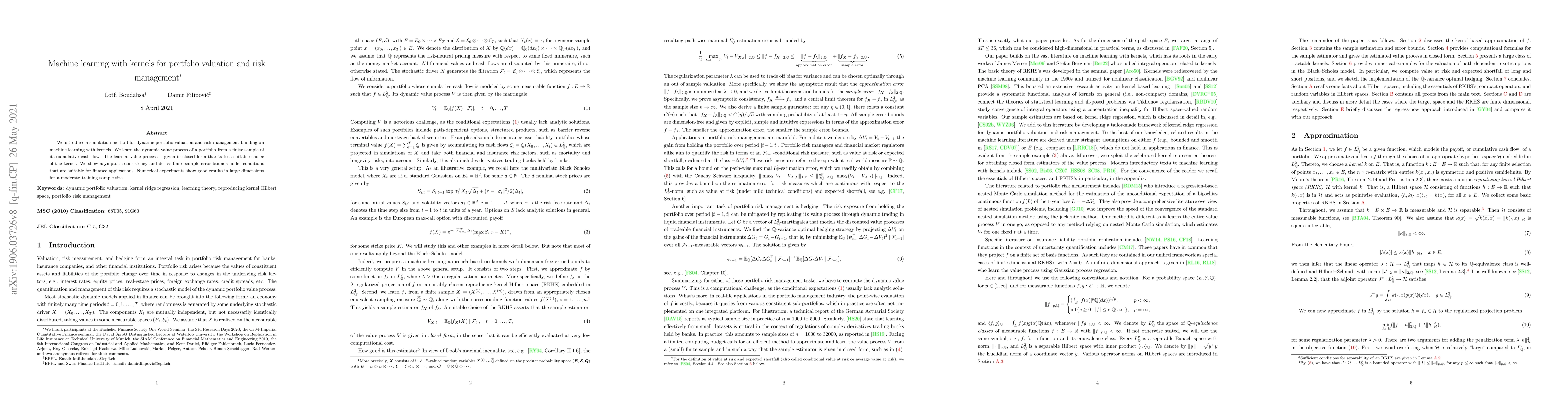 We introduce a simulation method for dynamic portfolio valuation and risk management building on machine learning with kernels. We learn the dynamic value process of a portfolio from a finite sample of its cumulative cash flow. The learned value process is given in closed form thanks to a suitable choice of the kernel. We show asymptotic consistency and derive finite sample error bounds under conditions that are suitable for finance applications. Numerical experiments show good results in large dimensions for a moderate training sample size.