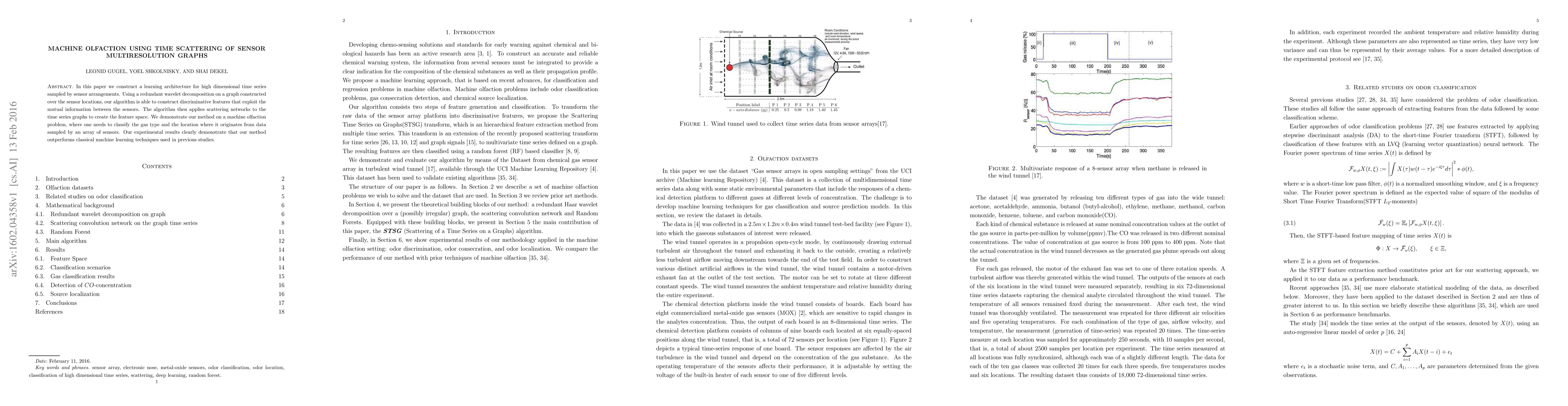 This paper presents a novel learning architecture for high dimensional time series data from sensor arrays, using a redundant wavelet graph decomposition and scattering networks to create discriminative features. The method significantly outperforms classical machine learning techniques in a machine olfaction problem, demonstrating effective classification of gas types and origins.