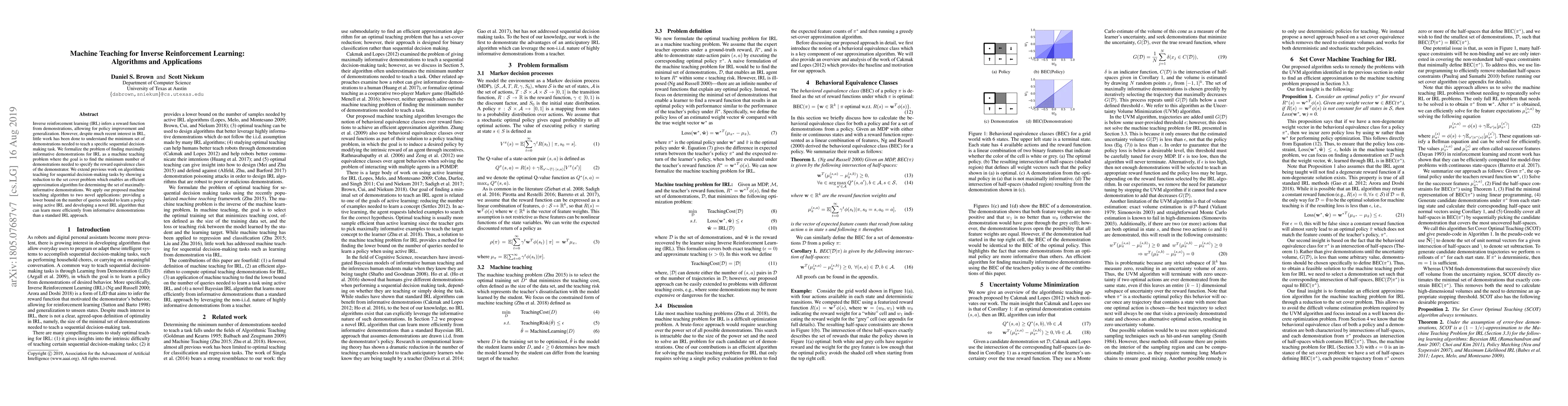 This paper proposes a machine teaching approach to determine the minimum number of demonstrations needed for inverse reinforcement learning (IRL) to accurately infer a reward function. It leverages a reduction to the set cover problem to develop an efficient algorithm for finding the most informative demonstrations, and applies this method to improve the efficiency of active IRL and develop a novel IRL algorithm.